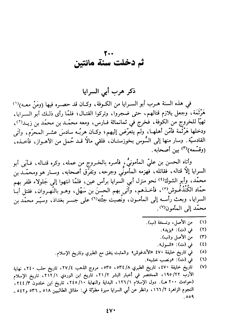 [ثُمَّ دَخَلَتْ سَنَةُ مِائَتَيْنِ]