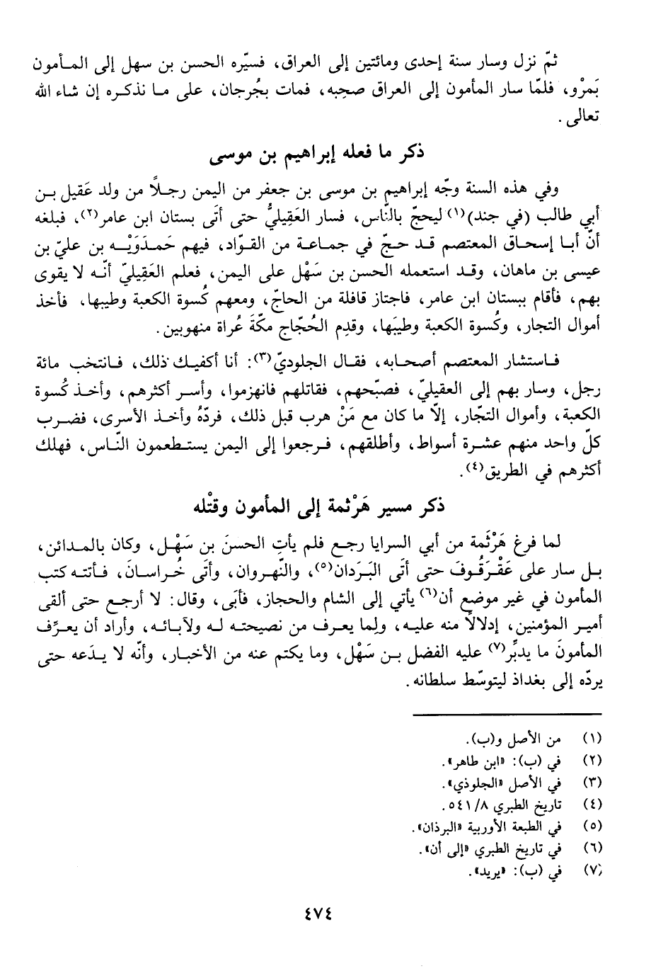 ذِكْرُ مَا فَعَلَهُ إِبْرَاهِيمُ بْنُ مُوسَى وَفِي هَذِهِ السَّنَةِ وَجَّهَ إِبْرَاهِيمُ بْنُ مُوسَى بْنِ جَعْفَرٍ مِنَ الْيَمَنِ رَجُلًا مِنْ وَلَدِ عَقِيلِ بْنِ أَبِي طَالِبٍ (فِي جُنْدٍ) لِيَحُجَّ بِالنَّاسِ، فَسَارَ الْعَقِيلِيُّ حَتَّى أَتَى بُسْتَانَ ابْنِ عَامِرٍ، فَبَلَغَهُ أَنَّ أَبَا إِسْحَاقَ الْمُعْتَصِمَ قَدْ حَجَّ فِي جَمَاعَةٍ مِنَ الْقُوَّادِ، فِيهِمْ حَمْدَوَيْهِ بْنُ عَلِيِّ بْنِ عِيسَى بْنِ مَاهَانَ، وَقَدِ اسْتَعْمَلَهُ الْحَسَنُ بْنُ سَهْلٍ عَلَى الْيَمَنِ، فَعَلِمَ الْعَقِيلِيُّ أَنَّهُ لَا يَقْوَى بِهِمْ، فَأَقَامَ بِبُسْتَانِ ابْنِ عَامِرٍ، فَاجْتَازَ قَافِلَةً مِنَ الْحَاجِّ، وَمَعَهُمْ كُسْوَةُ الْكَعْبَةِ وَطِيبُهَا، فَأَخَذَ أَمْوَالَ التُّجَّارِ وَكُسْوَةَ الْكَعْبَةِ وَطِيبَهَا، وَقَدِمَ الْحَجَّاجُ مَكَّةَ عُرَاةً مَنْهُوبِينَ.