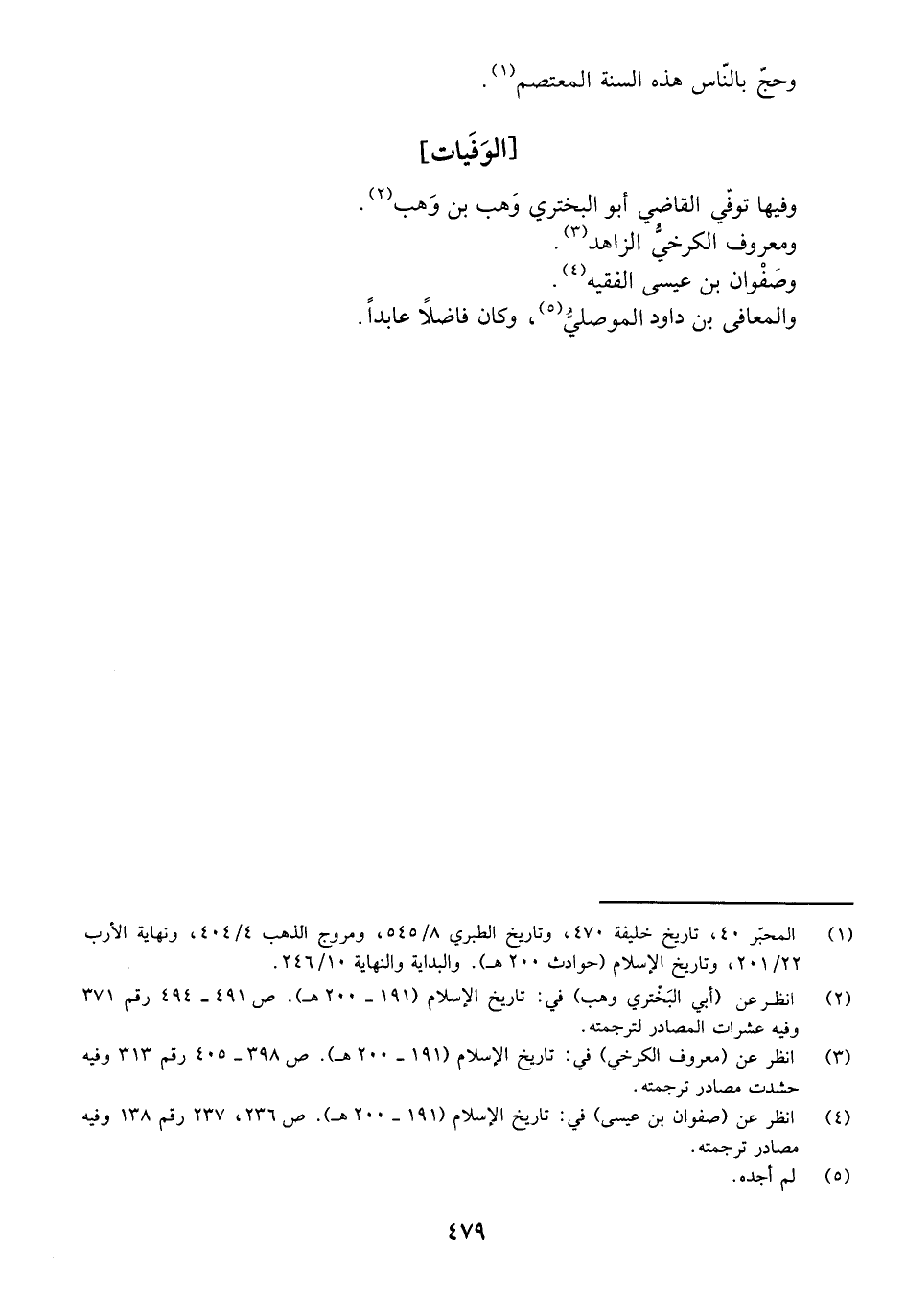 وَفِيهَا تُوُفِّيَ الْقَاضِي أَبُو الْبَخْتَرِيِّ وَهْبُ بْنُ وَهْبٍ. وَمَعْرُوفٌ الْكَرْخِيُّ الزَّاهِدُ. وَصَفْوَانُ بْنُ عِيسَى الْفَقِيهُ. وَالْمُعَافَى بْنُ دَاوُدَ الْمَوْصِلِيُّ، وَكَانَ فَاضِلًا عَابِدًا.