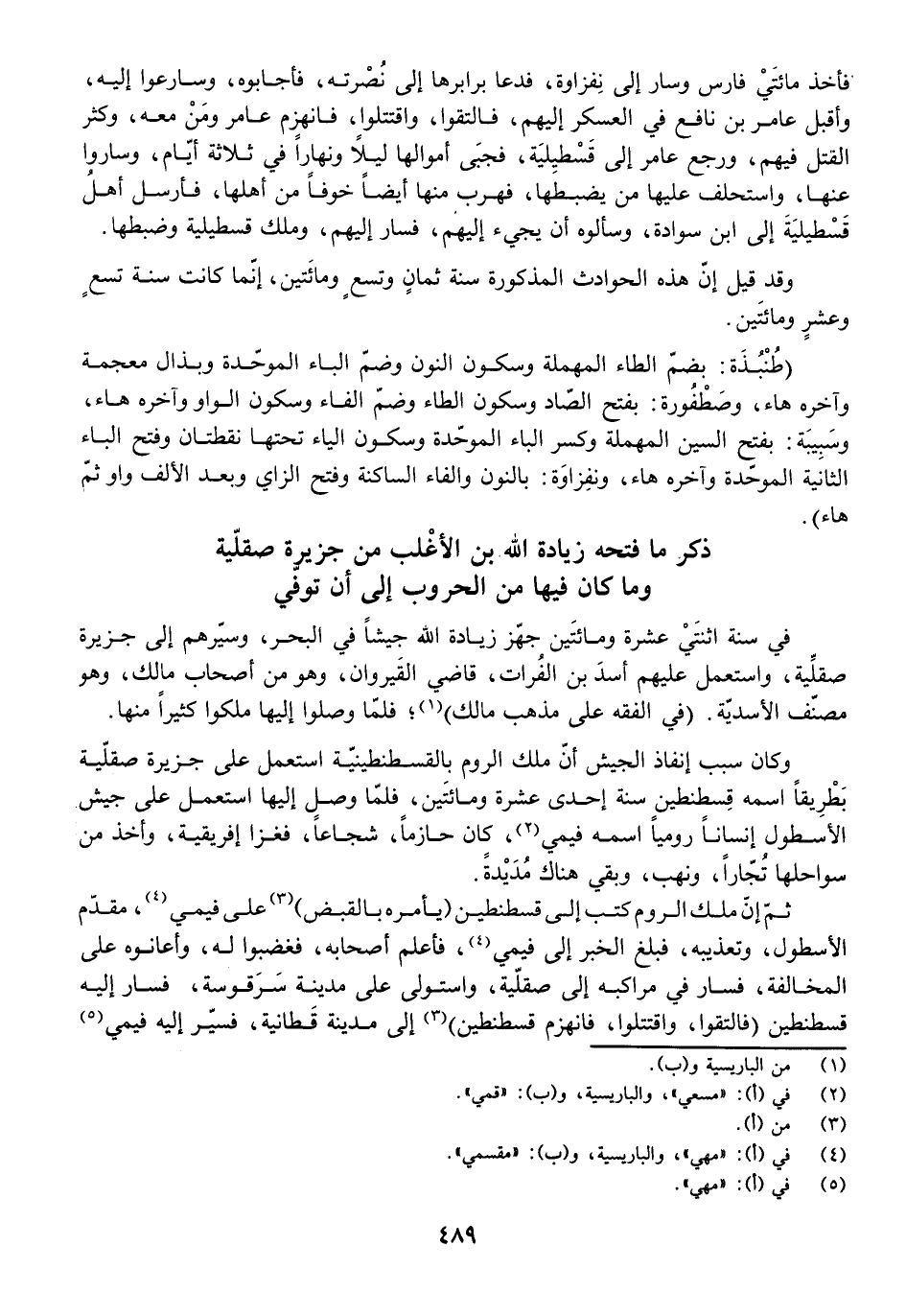 وَقَدْ قِيلَ: إِنَّ هَذِهِ الْحَوَادِثَ الْمَذْكُورَةَ سَنَةَ ثَمَانٍ وَتِسْعٍ وَمِائَتَيْنِ إِنَّمَا كَانَتْ سَنَةَ تِسْعٍ وَعَشْرٍ وَمِائَتَيْنِ.