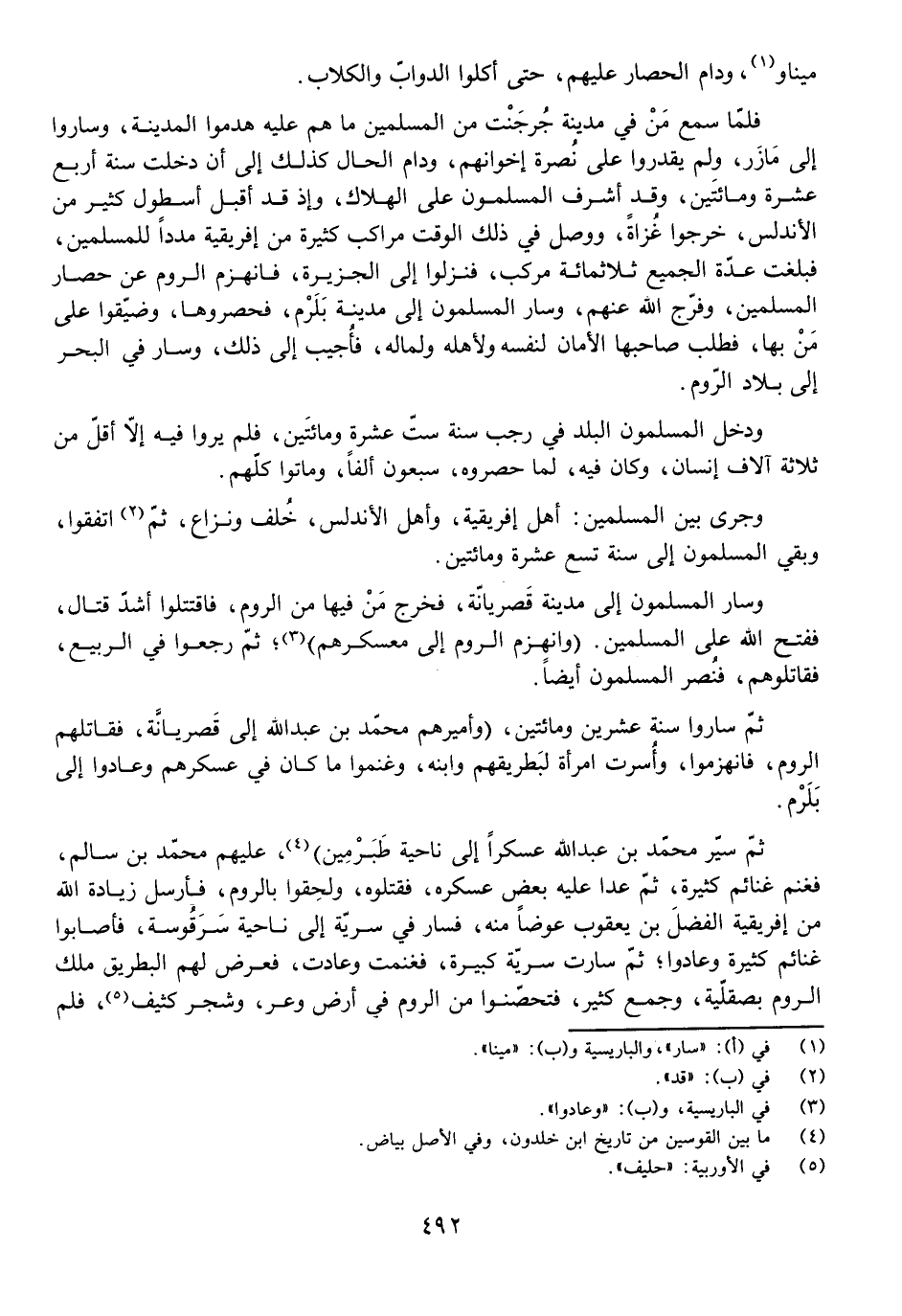 وَجَرَى بَيْنَ الْمُسْلِمِينَ: أَهْلُ إِفْرِيقِيَّةَ، وَأَهْلُ الْأَنْدَلُسِ - خُلْفٌ وَنِزَاعٌ، ثُمَّ اتَّفَقُوا، وَبَقِيَ الْمُسْلِمُونَ إِلَى سَنَةِ تِسْعَ عَشْرَةَ وَمِائَتَيْنِ.