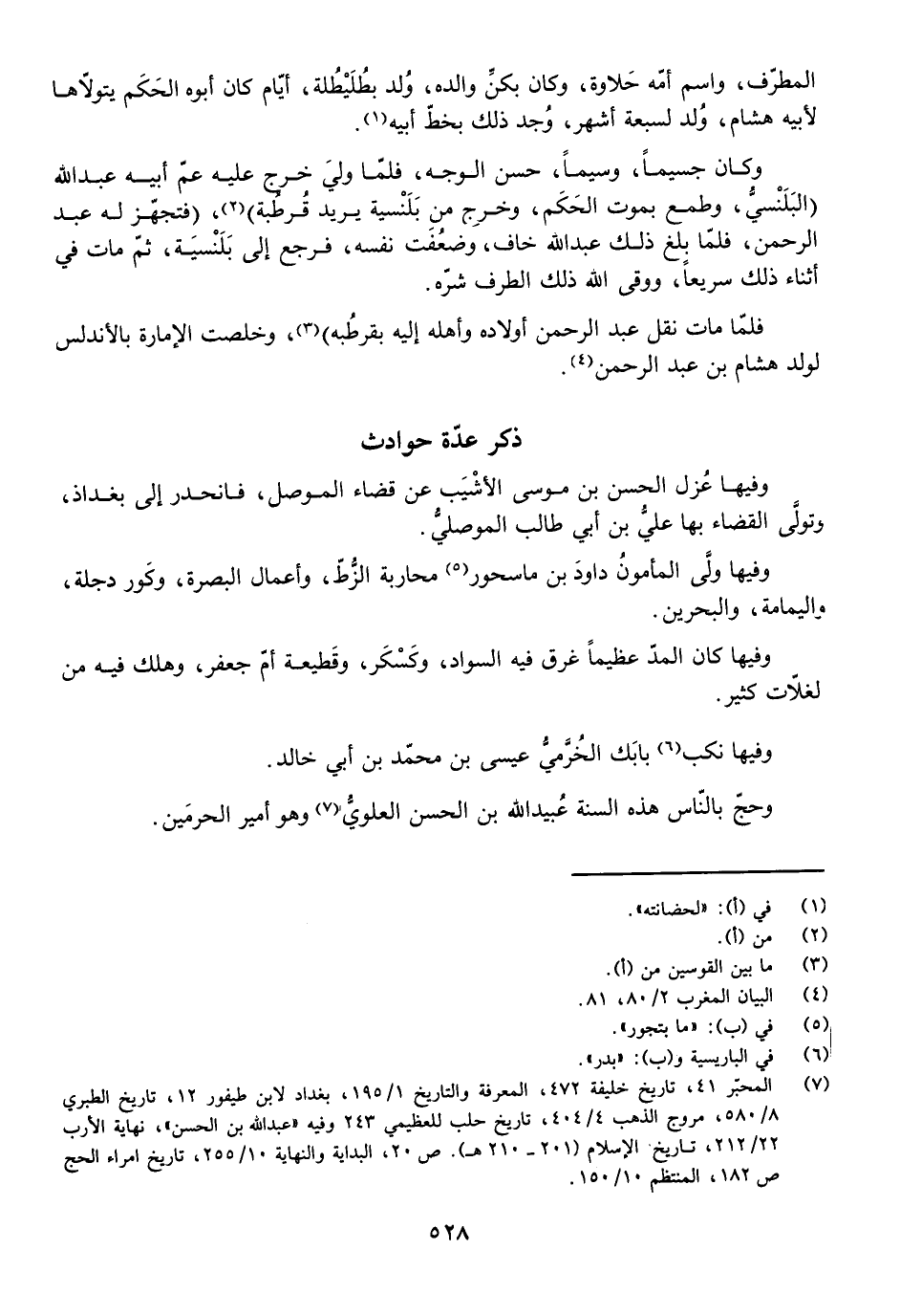 الْمُطَرِّفِ، وَاسْمُ أُمِّهِ حَلَاوَةُ، وَكَانَ بِكِنِّ وَالِدِهِ، وُلِدَ بِطُلَيْطِلَةَ، أَيَّامَ كَانَ أَبُوهُ الْحَكَمُ يَتَوَلَّاهَا لِأَبِيهِ هِشَامٍ، وُلِدَ لِسَبْعَةِ أَشْهُرٍ، وُجِدَ ذَلِكَ بِخَطِّ أَبِيهِ.