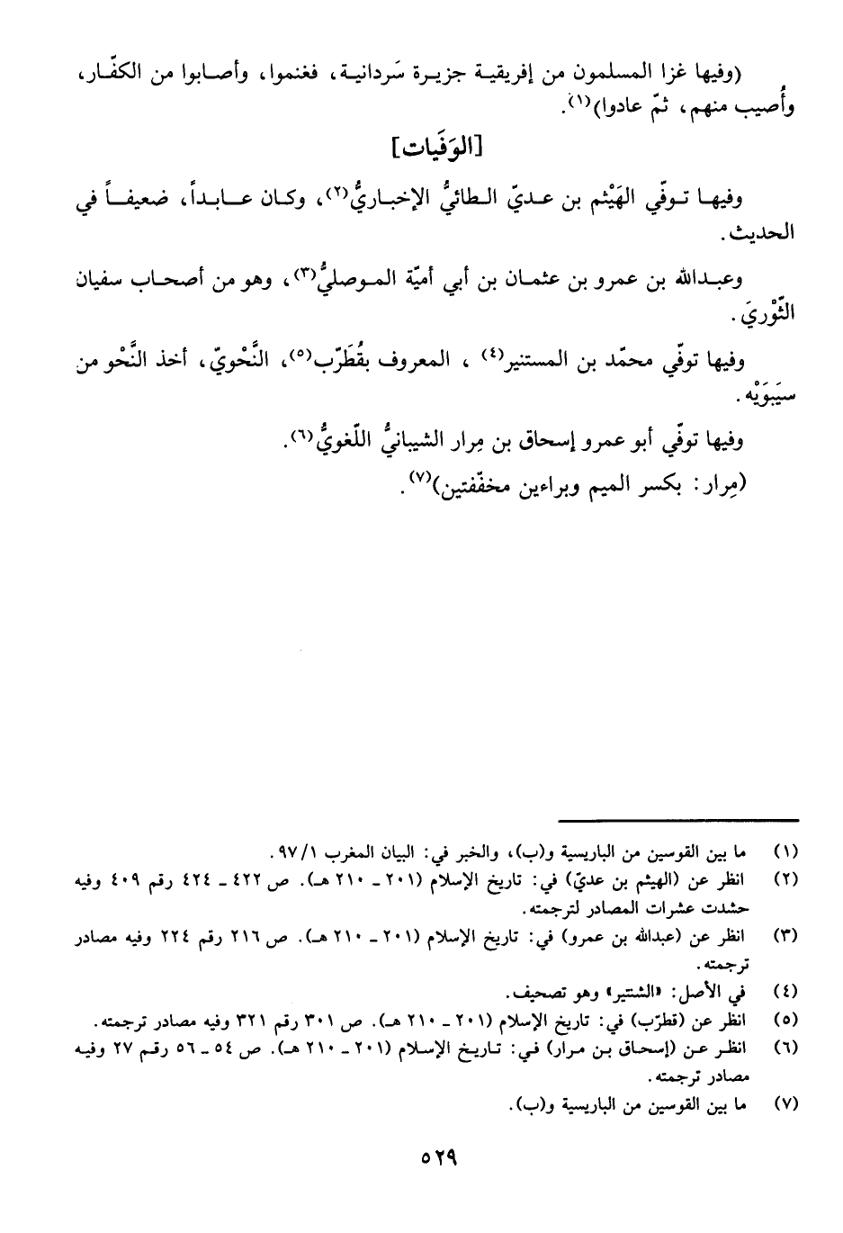 وَفِيهَا تُوُفِّيَ مُحَمَّدُ بْنُ الْمُسْتَنِيرِ، الْمَعْرُوفُ بِقُطْرُبٍ، النَّحْوِيُّ، أَخَذَ النَّحْوَ مِنْ سِيبَوَيْهَ.