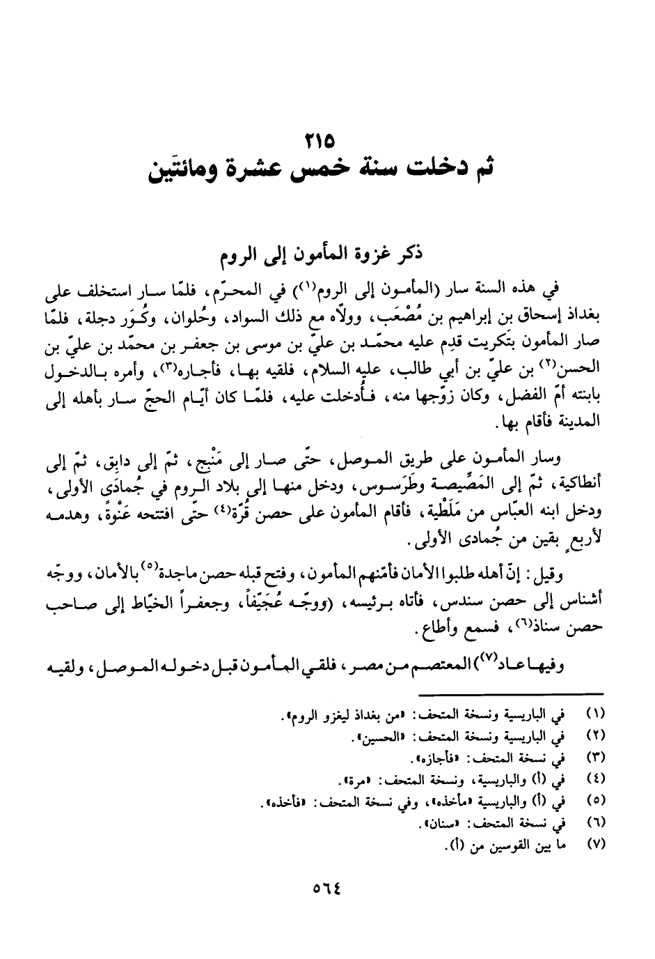 ثُمَّ دَخَلَتْ سَنَةُ خَمْسَ عَشْرَةَ وَمِائَتَيْنِ