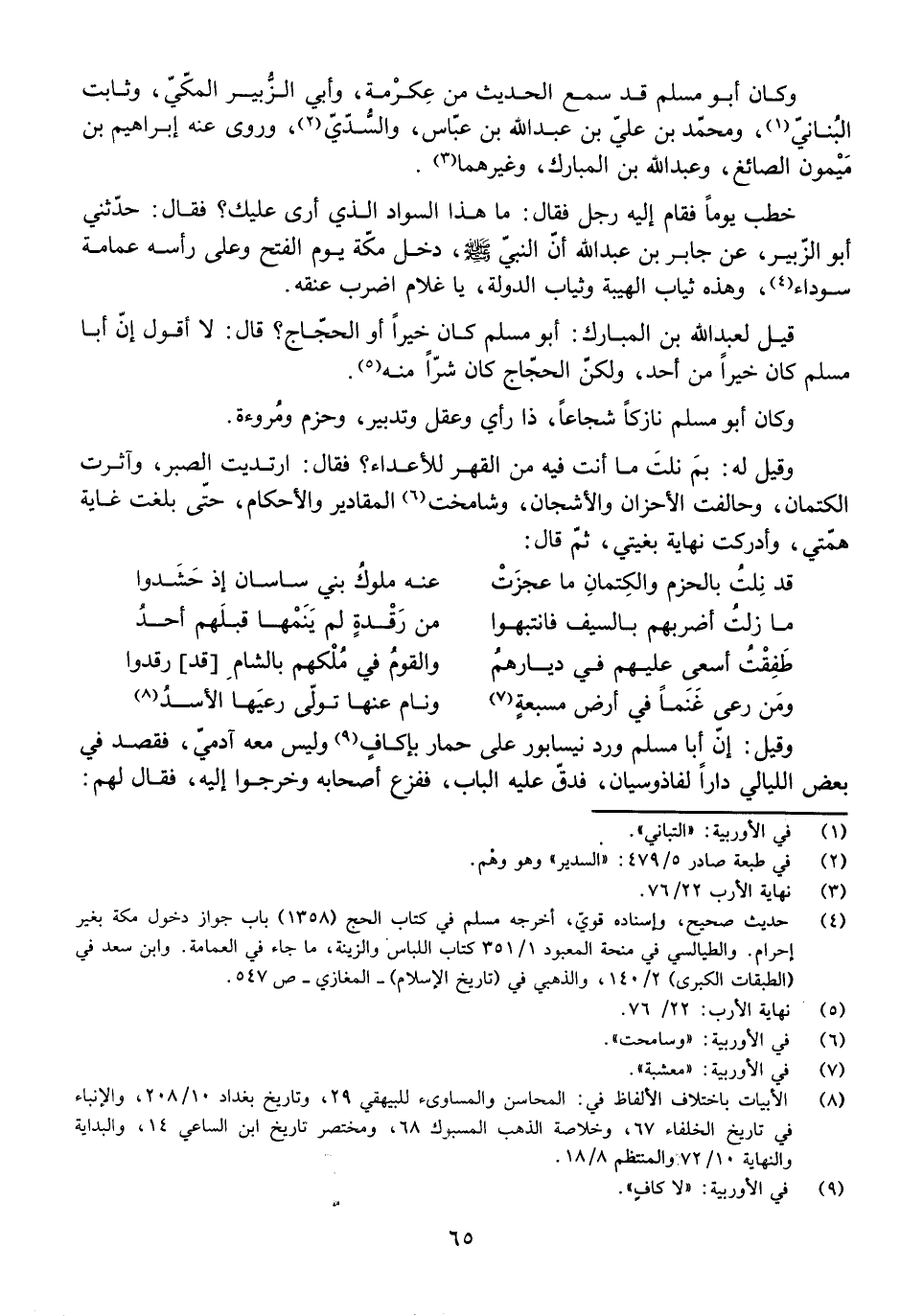 قِيلَ لِعَبْدِ اللَّهِ بْنِ الْمُبَارَكِ: أَبُو مُسْلِمٍ كَانَ خَيْرًا أَوِ الْحَجَّاجُ؟ قَالَ: لَا أَقُولُ إِنَّ أَبَا مُسْلِمٍ كَانَ خَيْرًا مِنْ أَحَدٍ، وَلَكِنَّ الْحَجَّاجَ كَانَ شَرًّا مِنْهُ.