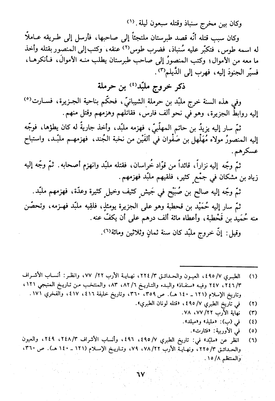 وَفِي هَذِهِ السَّنَةِ خَرَجَ مُلَبَّدُ بْنُ حَرْمَلَةَ الشَّيْبَانِيُّ، فَحَكَمَ بِنَاحِيَةِ الْجَزِيرَةِ، فَسَارَتْ إِلَيْهِ رَوَابِطُ الْجَزِيرَةِ، وَهُوَ فِي نَحْوِ أَلْفِ فَارِسٍ، فَقَاتَلَهُمْ وَهَزَمَهُمْ وَقَتَلَ مِنْهُمْ.