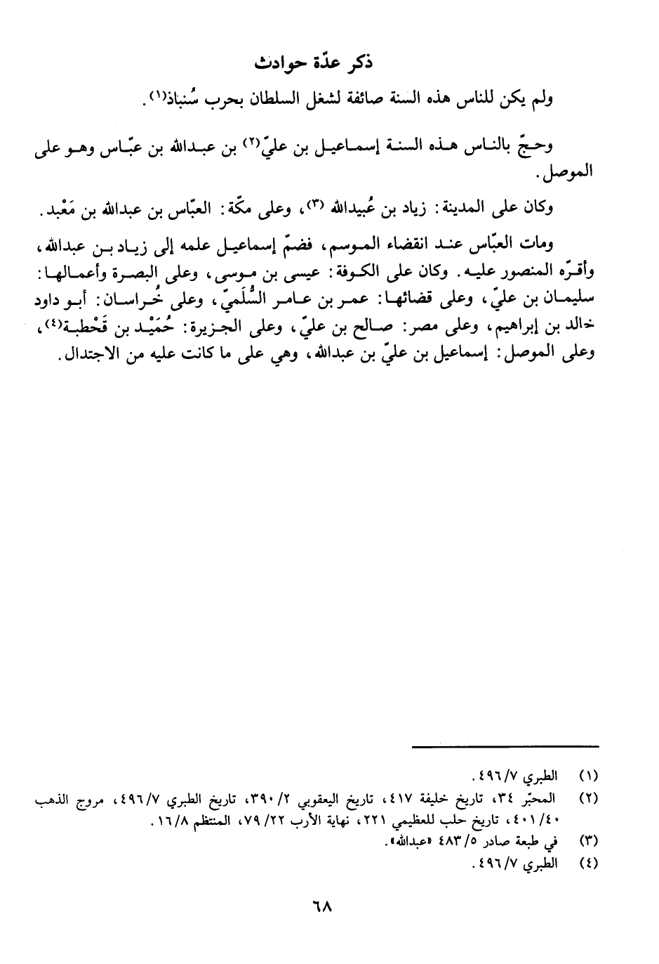 وَحَجَّ بِالنَّاسِ هَذِهِ السَّنَةَ إِسْمَاعِيلُ بْنُ عَلِيِّ بْنِ عَبْدِ اللَّهِ بْنِ عَبَّاسٍ وَهُوَ عَلَى الْمَوْصِلِ.