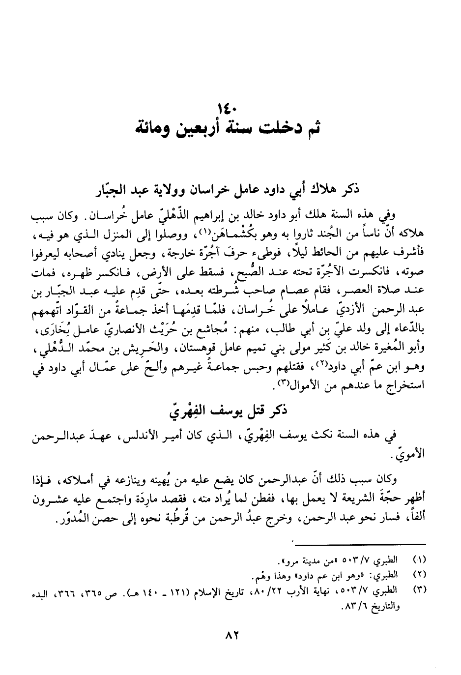 ثُمَّ دَخَلَتْ سَنَةُ أَرْبَعِينَ وَمِائَةٍ