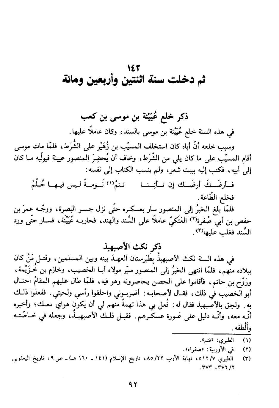 ثُمَّ دَخَلَتْ سَنَةُ اثْنَتَيْنِ وَأَرْبَعِينَ وَمِائَةٍ