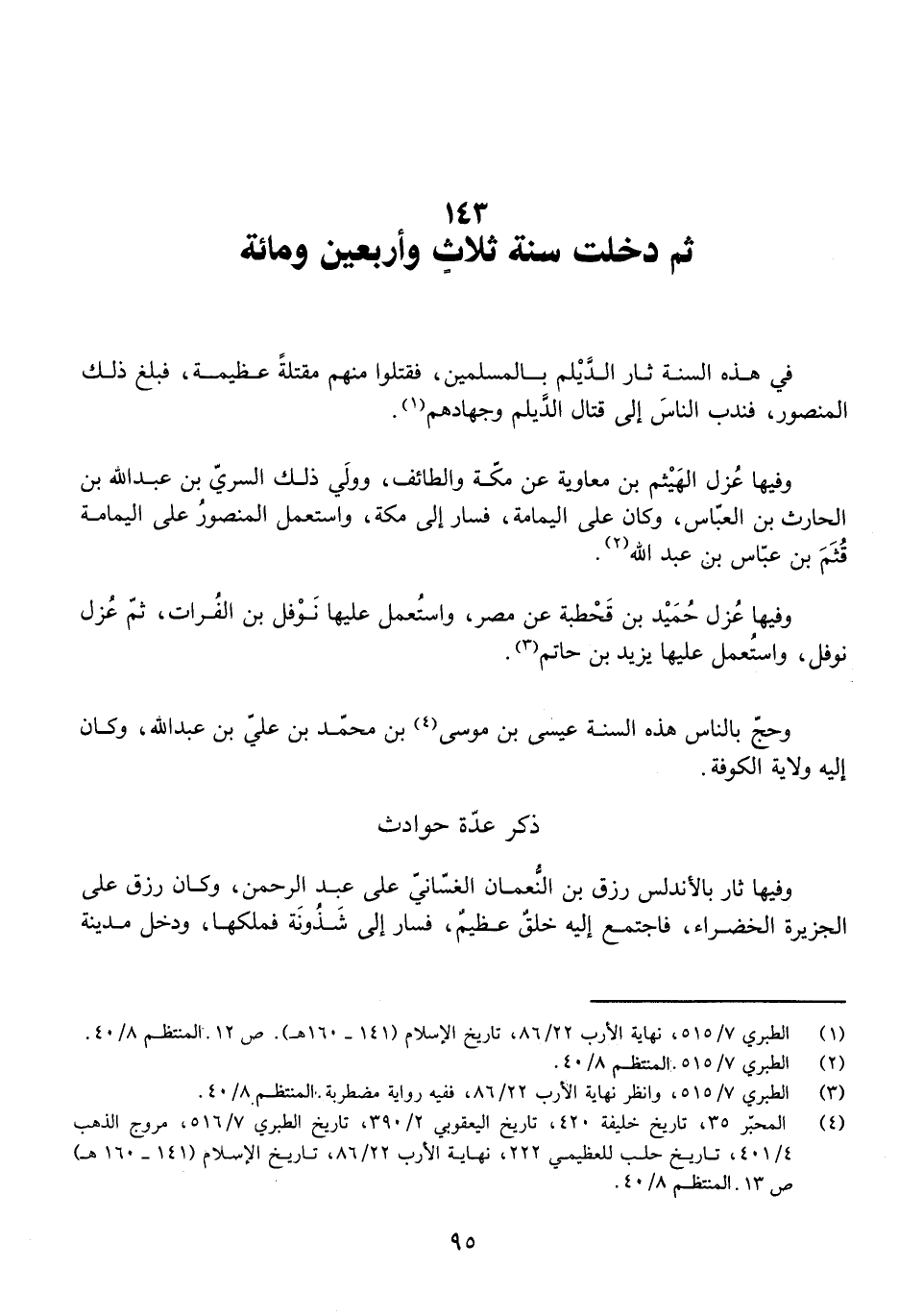 ثُمَّ دَخَلَتْ سَنَةُ ثَلَاثٍ وَأَرْبَعِينَ وَمِائَةٍ