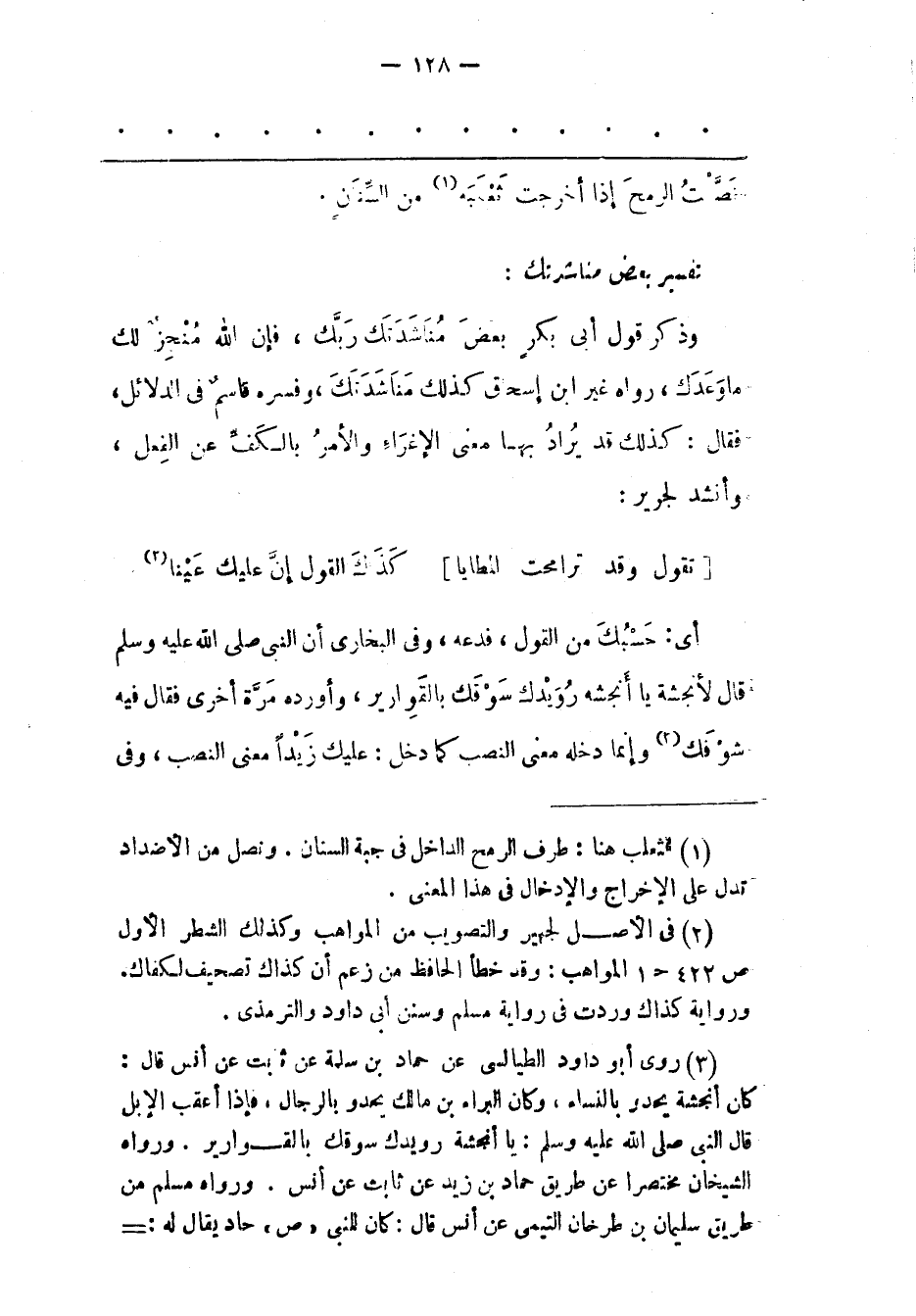 (2) فى الأصل لجهير والتصويب من المواهب وكذلك الشطر الأول ص 422 ح 1 المواهب: وقد خطأ الحافظ من زعم أن كذاك تصحيف لكفاك. ورواية كذاك وردت فى رواية مسلم وسنن أبى داود والترمذى.