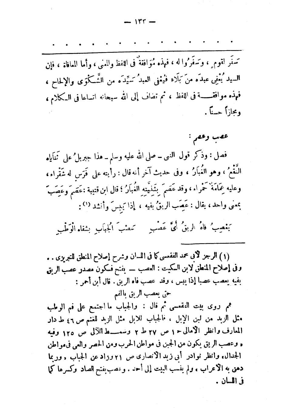 (1) الرجز لأبى محمد الفقعسى كما فى اللسان وشرح إصلاح المنطق للتبريزى.. وفى إصلاح المنطق لابن السكيت: العصب- بفتح فسكون مصدر عصب الريق بفيه يعصب عصبا إذا يبس، وقد عصب فاه الريق. قال أبن أحمر: