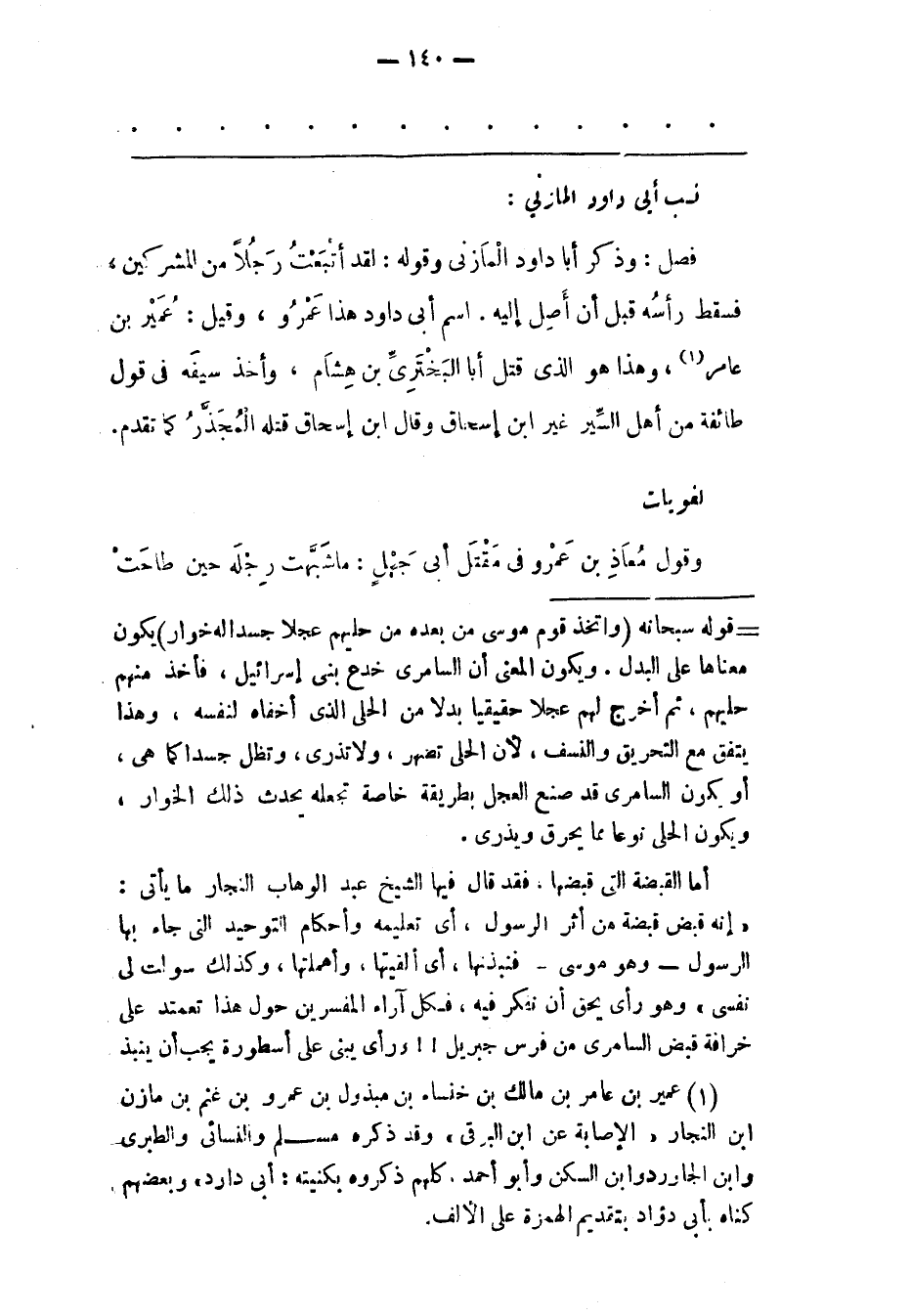 (1) عمير بن عامر بن مالك بن خنساء بن مبذول بن عمرو بن غنم بن مازن ابن النجار «الإصابة عن ابن البرقى» وقد ذكره مسلم والنسائى والطبرى وابن الجاورد وابن السكن وأبو أحمد، كلهم ذكروه بكنيته: أبى داود» وبعضهم كناه بأبى دؤاد بتقديم الهمزة على الألف.