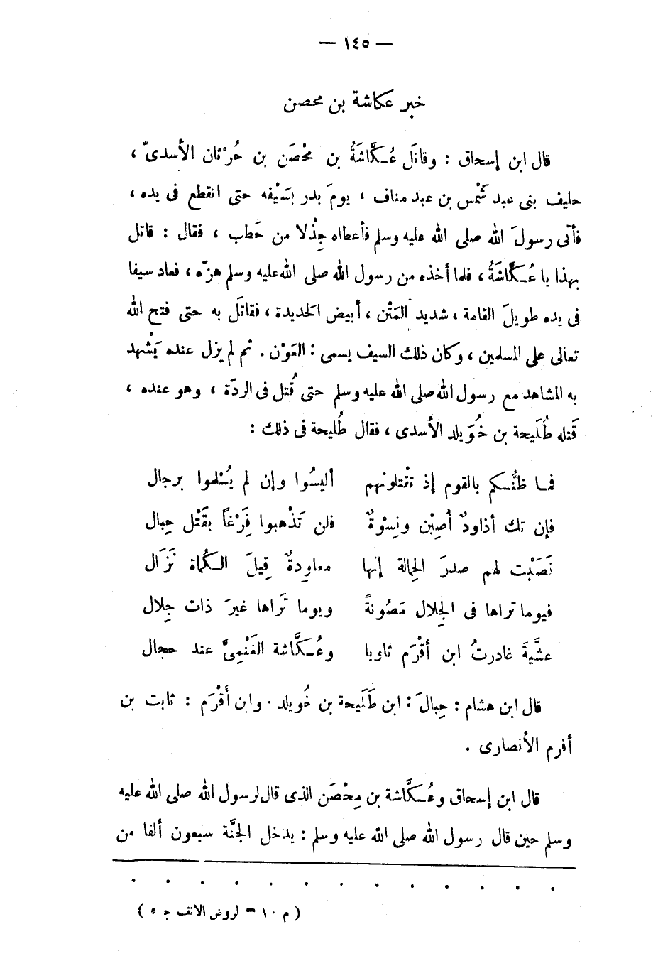 قَالَ ابْنُ إسْحَاقَ وَعُكّاشَةُ بْنُ مُحْصَنٍ الّذِي قَالَ لِرَسُولِ اللهِ صَلَّى اللَّهُ عَلَيْهِ وَسَلّمَ حِينَ قَالَ رَسُولُ اللهِ صَلَّى اللَّهُ عَلَيْهِ وَسَلَّمَ: يَدْخُلُ الْجَنّةَ سَبْعُونَ أَلْفًا مِنْ (م 10- لروض الأنف ج هـ)