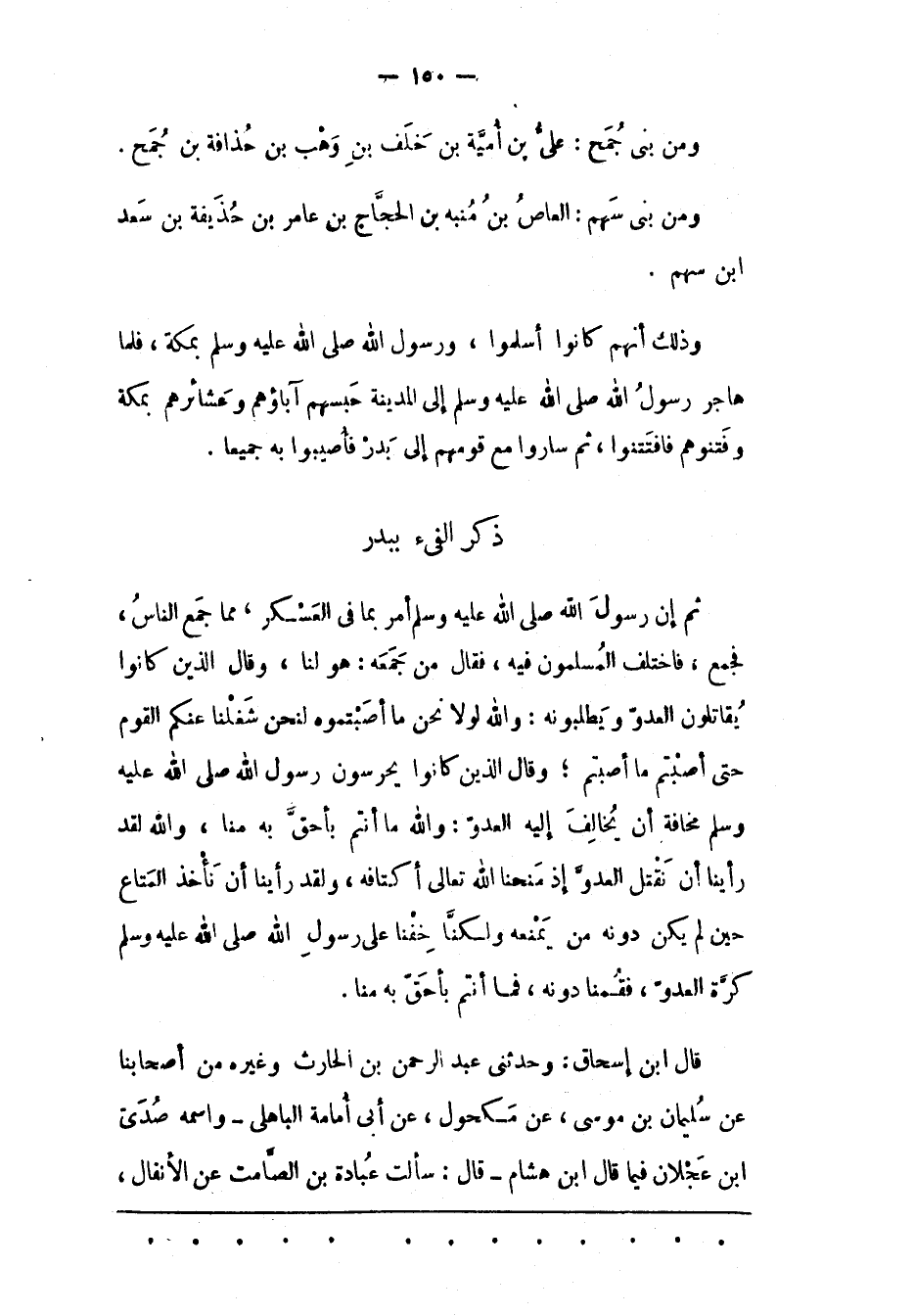 قَالَ ابْنُ إسْحَاقَ: وَحَدّثَنِي عَبْد الرّحْمَنِ بْنُ الْحَارِثِ وَغَيْرُهُ مِنْ أَصْحَابِنَا عن سليمان بن مُوسَى، عَنْ مَكْحُولٍ، عَنْ أَبِي أُمَامَةَ الْبَاهِلِيّ- واسمه صدىّ ابن عَجْلَانَ فِيمَا قَالَ ابْنُ هِشَامٍ- قَالَ: سَأَلْت عُبَادَةَ بْنَ الصّامِتِ عَنْ الْأَنْفَالِ،