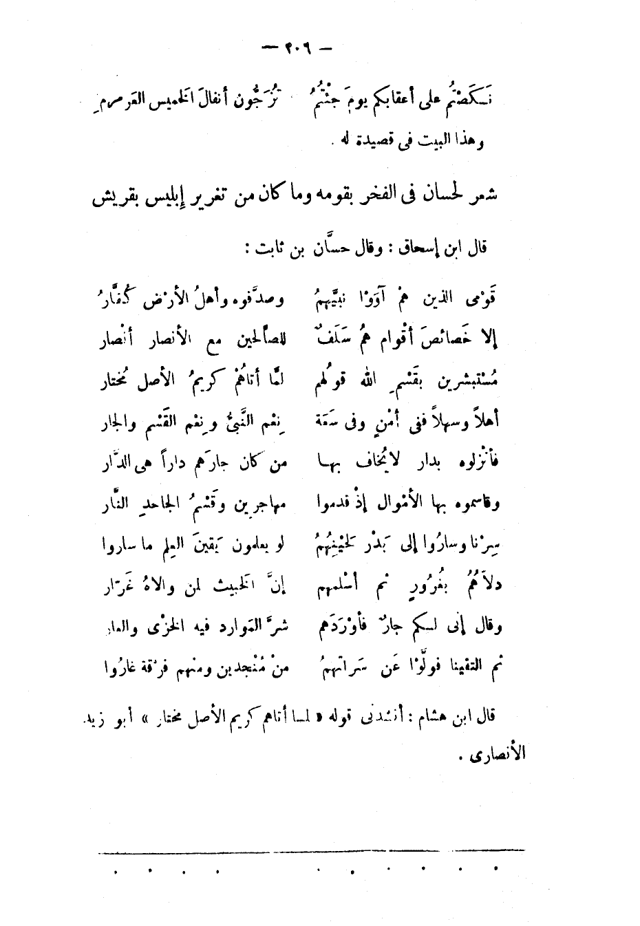 قَالَ ابْنُ هِشَامٍ: أَنْشَدَنِي قَوْلَهُ «لَمّا أَتَاهُمْ كَرِيمُ الْأَصْلِ مُخْتَارُ» أبو زيد الأنصارى.