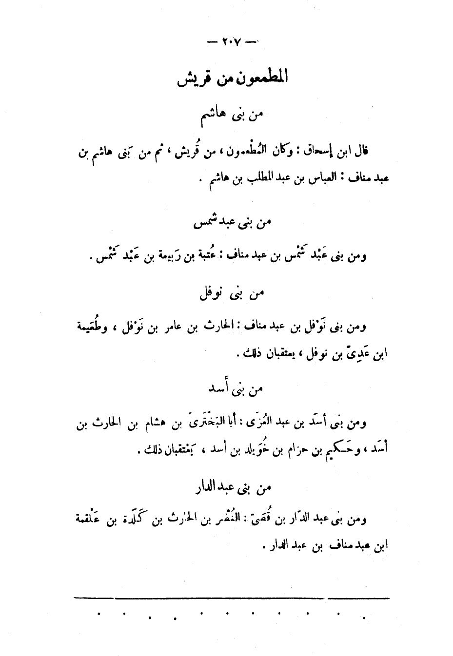 قَالَ ابْنُ إسْحَاقَ: وَكَانَ الْمُطْعِمُونَ، مِنْ قُرَيْشٍ، ثُمّ مِنْ بَنِي هَاشِمِ بْنِ عَبْدِ مَنَافٍ: العباس بن عبد المطلب بن هاشم.