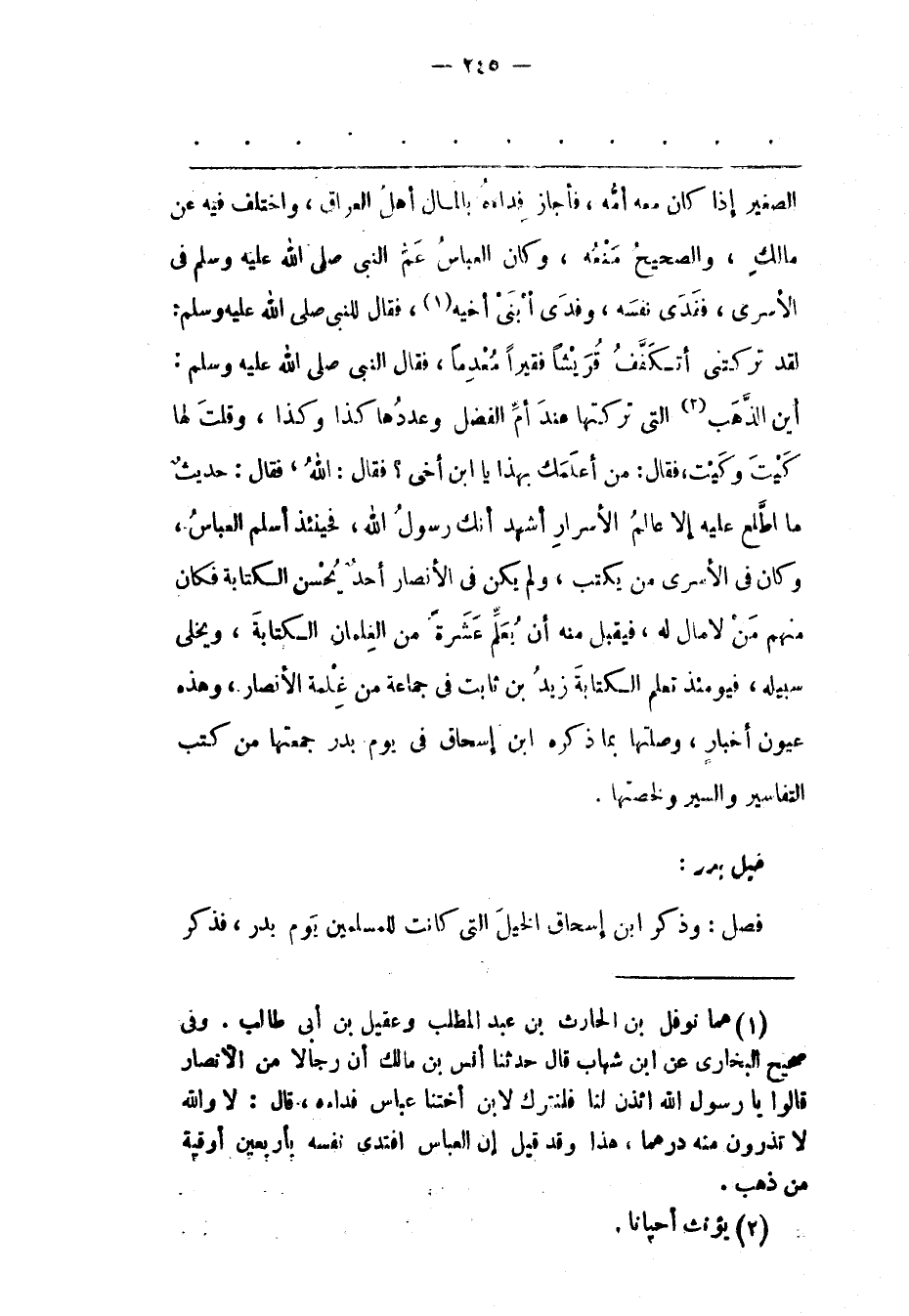 (1) هما نوفل بن الحارث بن عبد المطلب وعقيل بن أبى طالب. وفى صحيح البخارى عن ابن شهاب قال حدثنا أنس بن مالك أن رجالا من الأنصار قالوا يا رسول الله ائذن لنا فلنترك لابن أختنا عباس فداءه، قال: لا والله لا تذرون منه درهما، هذا وقد قيل إن العباس افتدى نفسه بأربعين أوقية من ذهب.