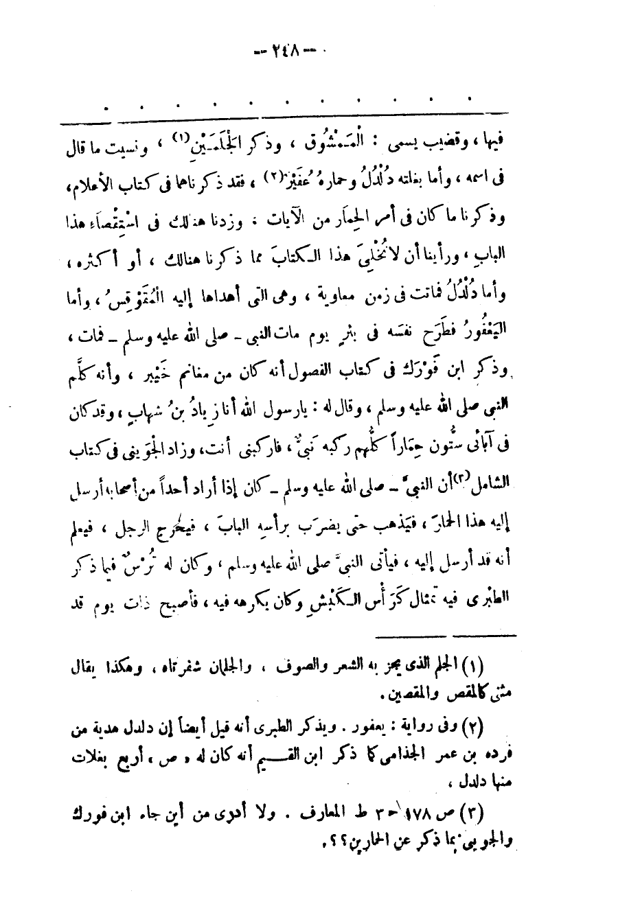 (3) ص 178 ح 3 ط المعارف. ولا أدرى من أين جاء ابن فورك والجوينى بما ذكر عن الحمارين؟؟.