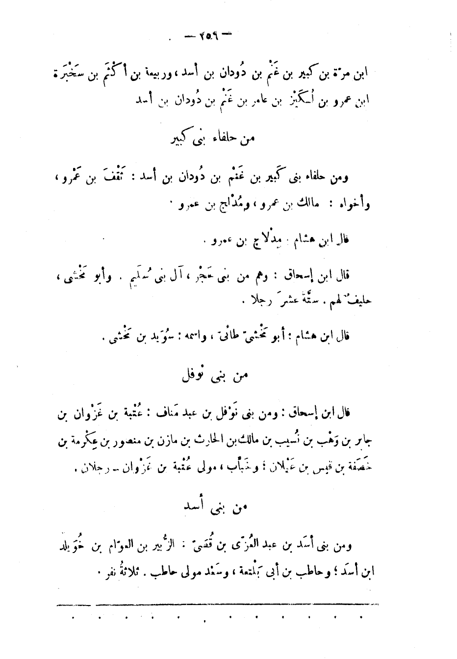 وَمِنْ بَنِي أَسَدِ بْنِ عَبْدِ الْعُزّى بْنِ قُصَيّ: الزّبَيْرُ بْنُ الْعَوّامِ بن خويلد ابن أَسَدٍ؛ وَحَاطِبُ بْنُ أَبِي بَلْتَعَةَ، وَسَعْدٌ مَوْلَى حَاطِبٍ. ثَلَاثَةُ نَفَرٍ.