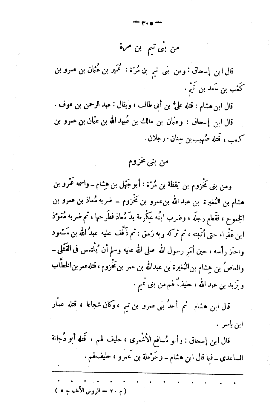 من بنى تيم بن مرة قَالَ ابْنُ إسْحَاقَ: وَمِنْ بَنِي تَيْمِ بْنِ مُرّةَ: عُمَيْرُ بْنُ عُثْمَانَ بْنِ عَمْرِو بْنِ كَعْبِ بْنِ سَعْدِ بْنِ تَيْمٍ.