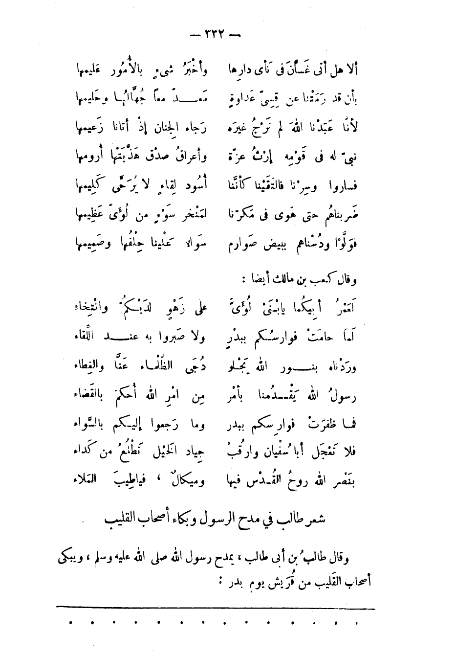 شِعْرُ طَالِبٍ فِي مَدْحِ الرّسُولِ وَبُكَاءِ أَصْحَابِ الْقَلِيبِ وَقَالَ طَالِبُ بْنُ أَبِي طَالِبٍ، يَمْدَحُ رَسُولَ اللهِ صَلّى اللهُ عَلَيْهِ وَسَلّمَ، وَيَبْكِي أَصْحَابَ الْقَلِيبِ مِنْ قُرَيْشٍ يَوْمَ بَدْرٍ: