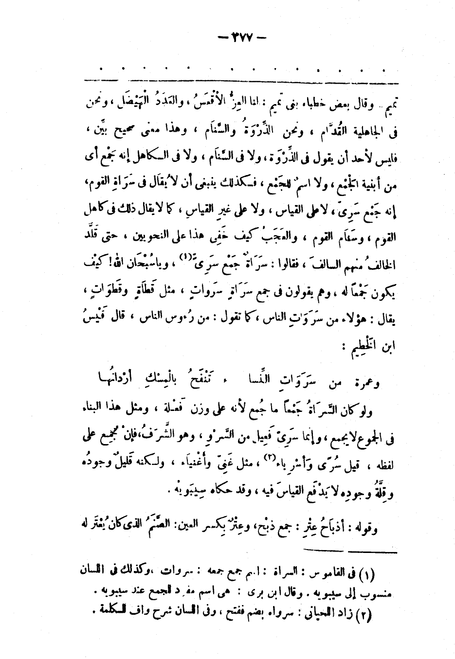 (1) فِي القاموس: السراة: اسم جمع جمعه: سروات، وكذلك فى اللسان منسوب إلى سيبويه. وقال ابن برى: هى اسم مفرد للجمع عند سيبويه.