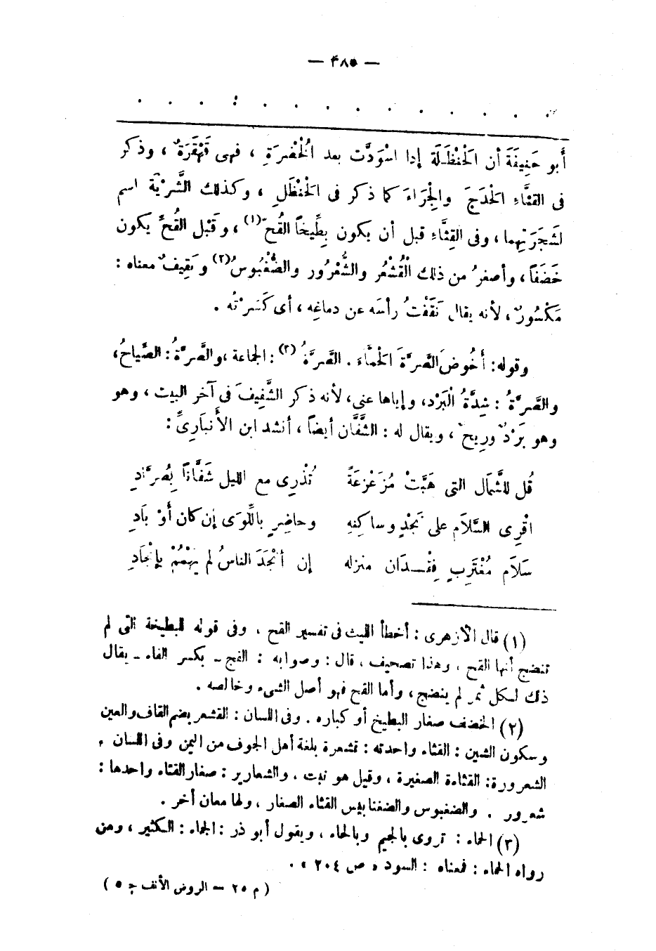 (2) الخضف صغار البطيخ أو كباره. وفى اللسان: القشعر بضم القاف والعين وسكون الشين: القثاه واحدته: قشعرة بلغة أهل الجوف من اليمن وفى اللسان. الشعرورة: القثاءة الصغيرة، وقيل هو نبت، والشعارير: صغار القثاء واحدها: شعرور. والضغبوس والضغنابيس القثاء الصغار، ولها معان أخر.