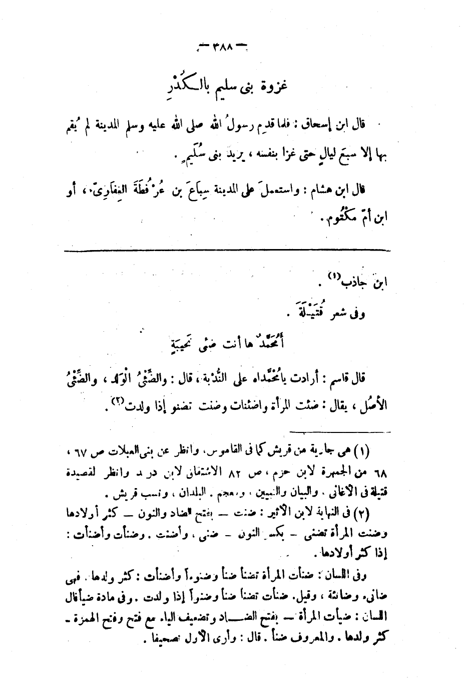قَالَ ابْنُ إسْحَاقَ: فَلَمّا قَدِمَ رَسُولُ اللهِ صَلَّى اللَّهُ عَلَيْهِ وَسَلَّمَ المدينة لَمْ يَقُمْ بِهَا إلّا سَبْعَ لَيَالٍ حَتّى غَزَا بِنَفْسِهِ، يُرِيدُ بَنِي سُلَيْمٍ.