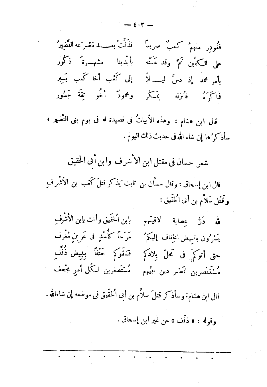 قَالَ ابْنُ هِشَامٍ: وَهَذِهِ الْأَبْيَاتُ فِي قَصِيدَةٍ لَهُ فِي يَوْمِ بَنِي النّضِيرِ، سَأَذْكُرُهَا إنْ شَاءَ اللهُ فِي حَدِيثِ ذَلِكَ الْيَوْمِ.