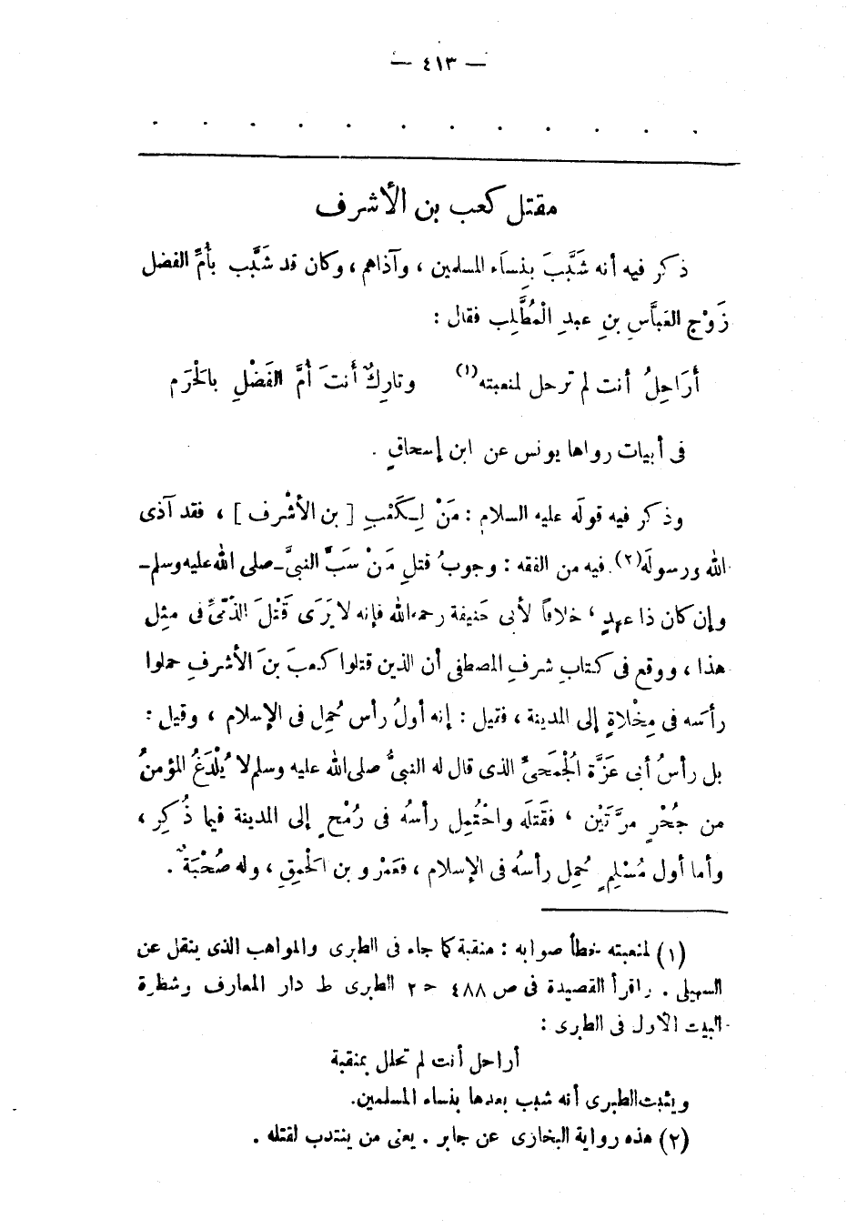 (1) لمنعبته خطأ صوابه: منقبة كما جاء فى الطبرى والمواهب الذى ينقل عن السهيلى. واقرأ القصيدة فى ص 488 ح 2 الطبرى ط دار المعارف و؟؟؟ البيت الأول فى الطبرى: