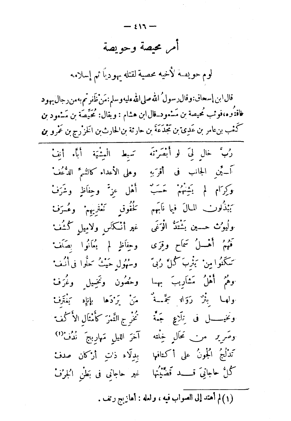 قَالَ ابْنُ إسْحَاقَ: وَقَالَ رَسُولُ اللهِ صَلَّى اللَّهُ عَلَيْهِ وَسَلَّمَ: مَنْ ظَفَرْتُمْ بِهِ مِنْ رِجَالِ يَهُودَ فَاقْتُلُوهُ، فَوَثَبَ مُحَيّصَةُ بْنُ مَسْعُودٍ- قَالَ ابْنُ هِشَامٍ: وَيُقَالُ: مُحَيّصَةُ بْنُ مَسْعُودِ بْنِ كَعْبِ بْنِ عَامِرِ بْنِ عَدِيّ بْنِ مَجْدَعَةَ بْنِ حَارِثَةَ بْنِ الْحَارِثِ بْنِ الْخَزْرَجِ بْنِ عَمْرِو بْنِ