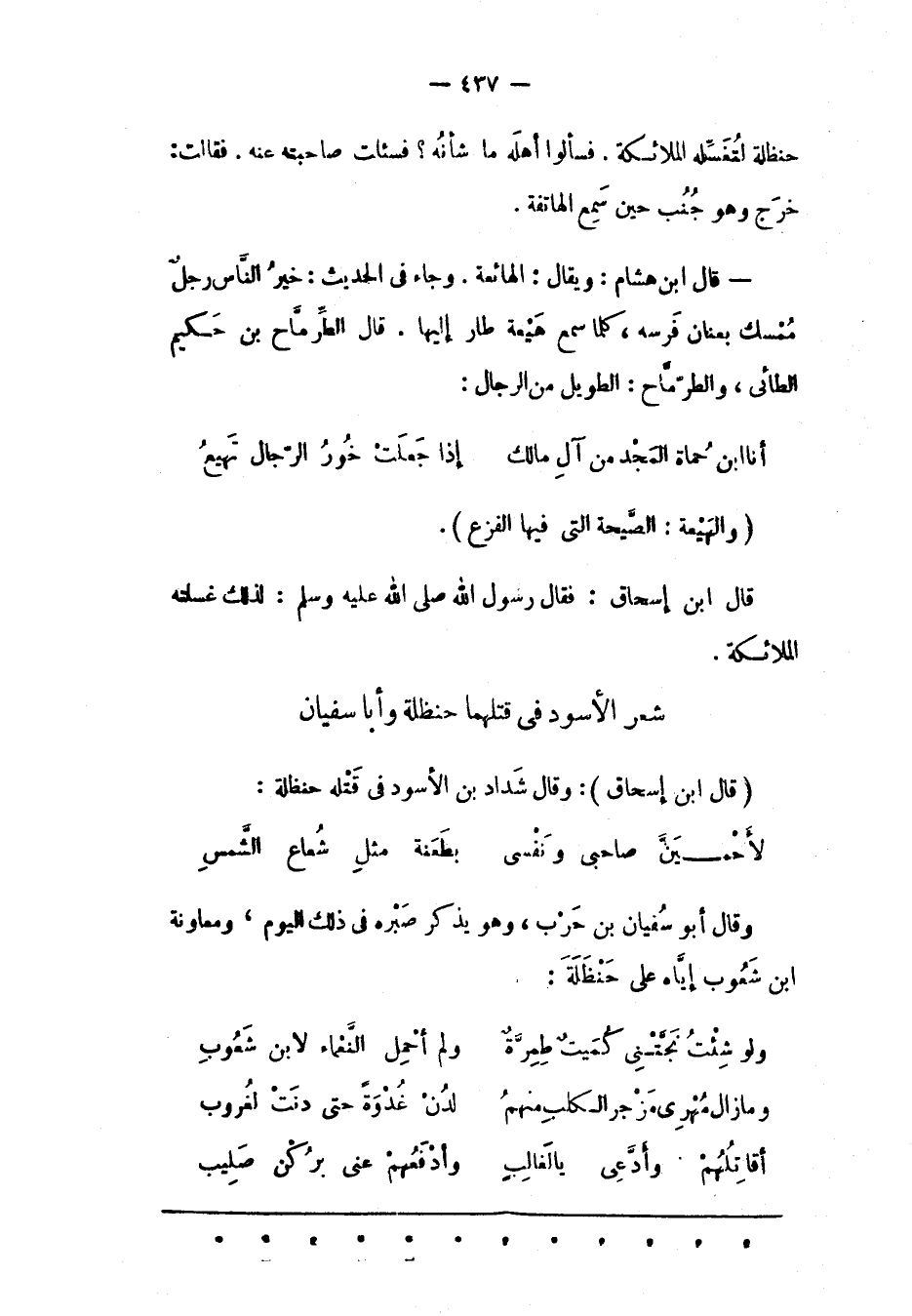 (قَالَ ابْنُ إسْحَاقَ) : وَقَالَ شَدّادُ بْنُ الْأَسْوَدِ فِي قَتْلِهِ حَنْظَلَةَ: