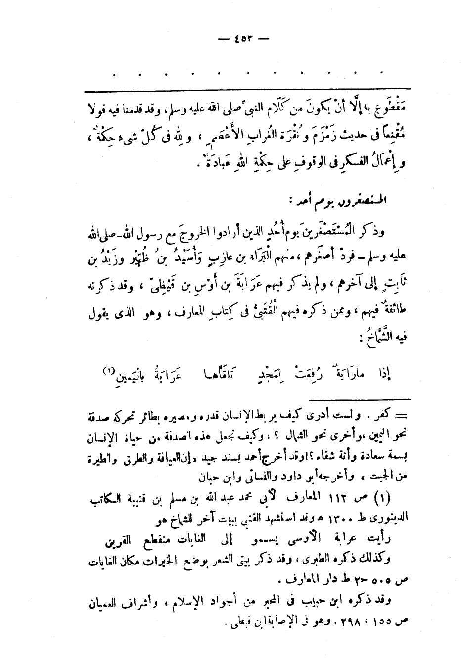 (1) ص 112 المعارف لأبى محمد عبد الله بن مسلم بن قتيبة الكاتب الدينورى ط 1300 هـ وقد استشهد القتبى ببيت آخر للشماخ هو
