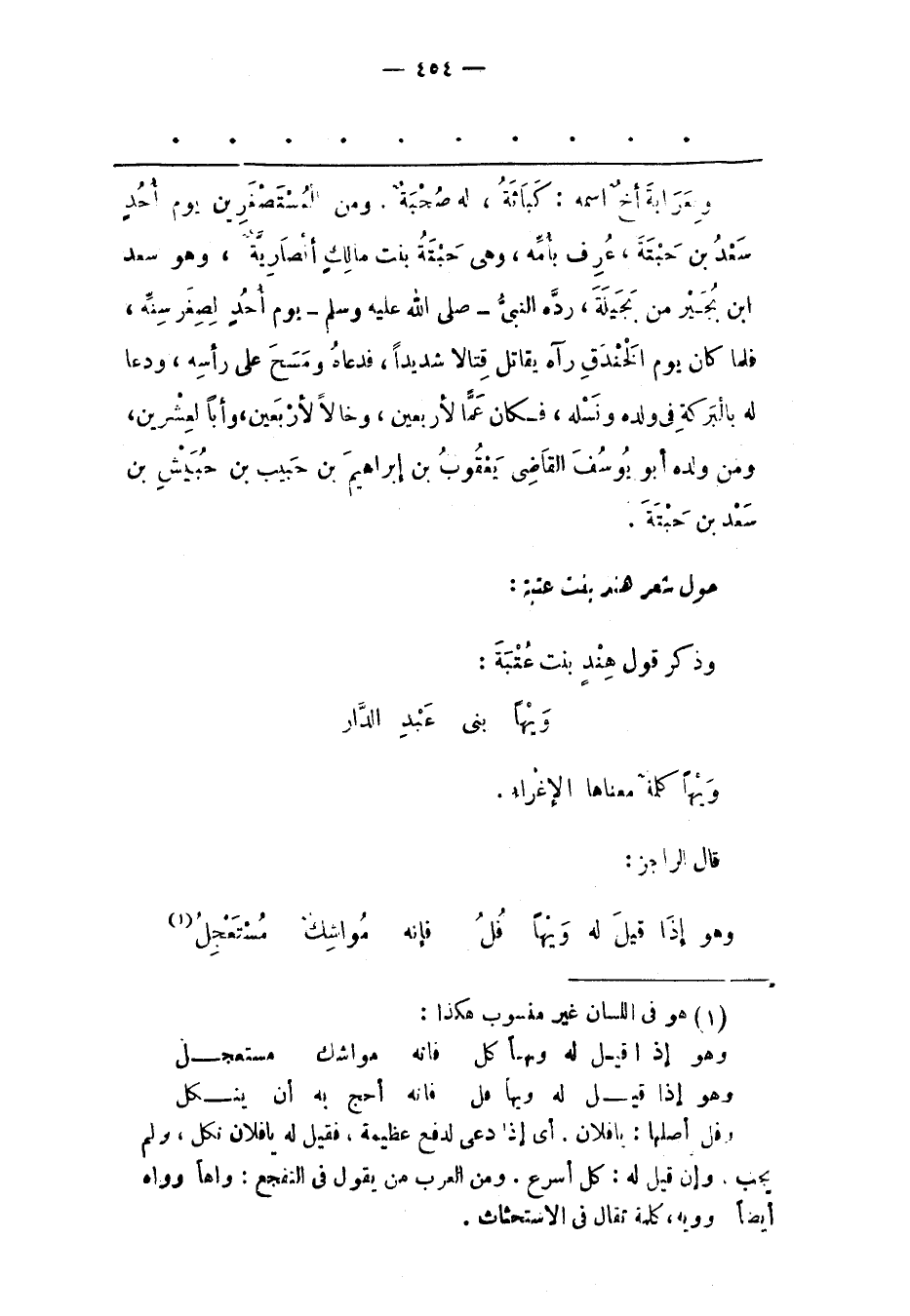 حَوْلَ شِعْرِ هِنْدَ بِنْتِ عُتْبَةَ: وَذَكَرَ قَوْلَ هِنْدَ بِنْتِ عُتْبَةَ: