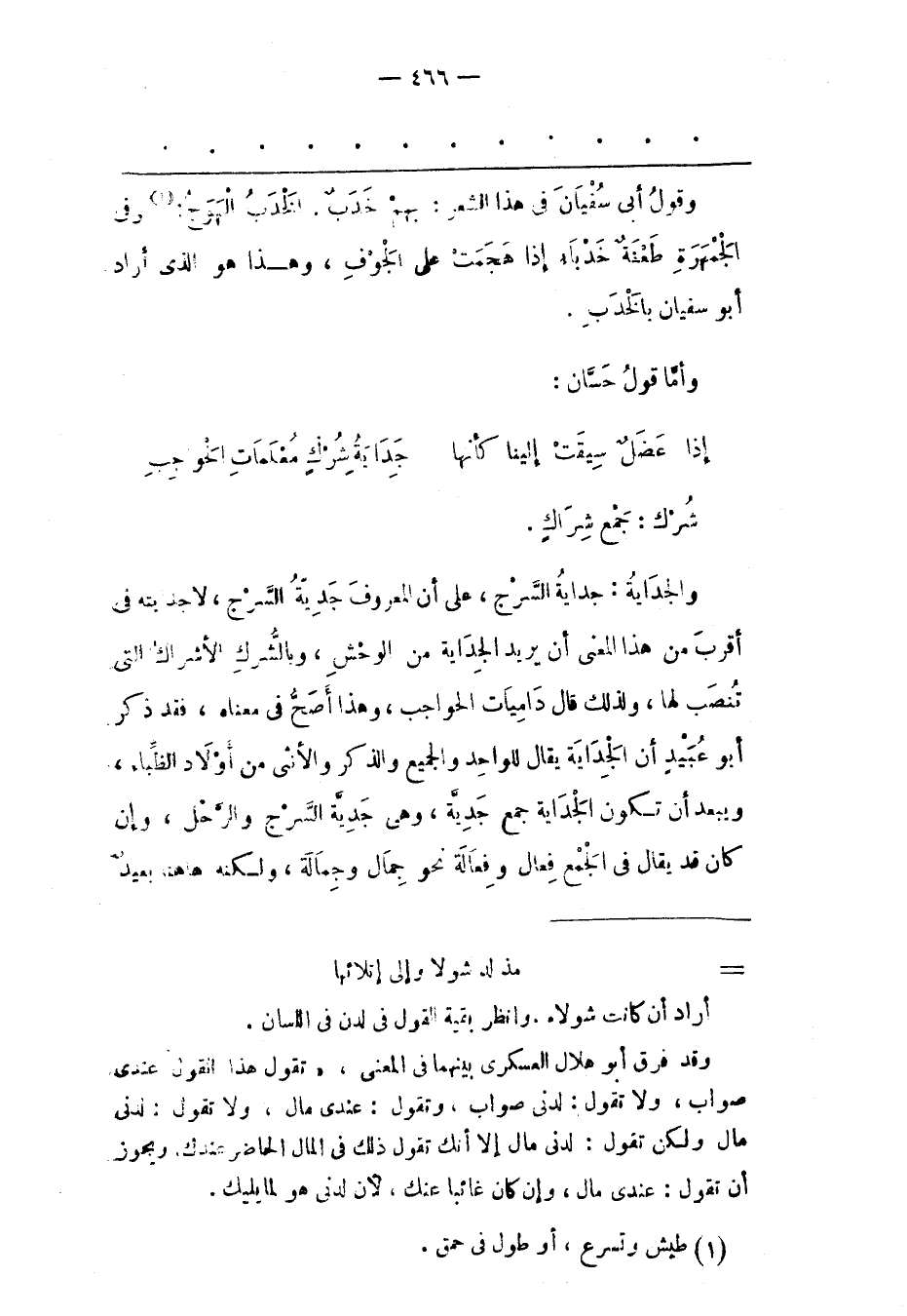 - مذلد شولا وإلى إتلائها أراد أن كانت شولاء. وانظر بقية القول فى لدن فى اللسان. وقد فرق أبو هلال العسكرى بينهما فى المعنى، «تقول هذا القول عندى صواب، ولا تقول: لدنى صواب، وتقول: عندى مال، ولا تقول: لدنى مال ولكن تقول: لدنى مال إلا أنك تقول ذلك فى المال الحاضر عندك. ويجوز أن تقول: عندى مال، وإن كان غائبا عنك، لأن لدنى هو لما يليك.