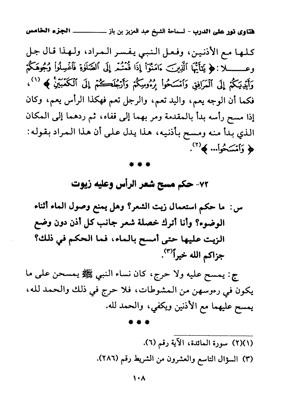 72 - حكم مسح شعر الرأس وعليه زيوت