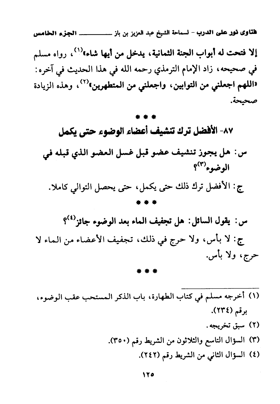87 - الأفضل ترك تنشيف أعضاء الوضوء حتى يكمل