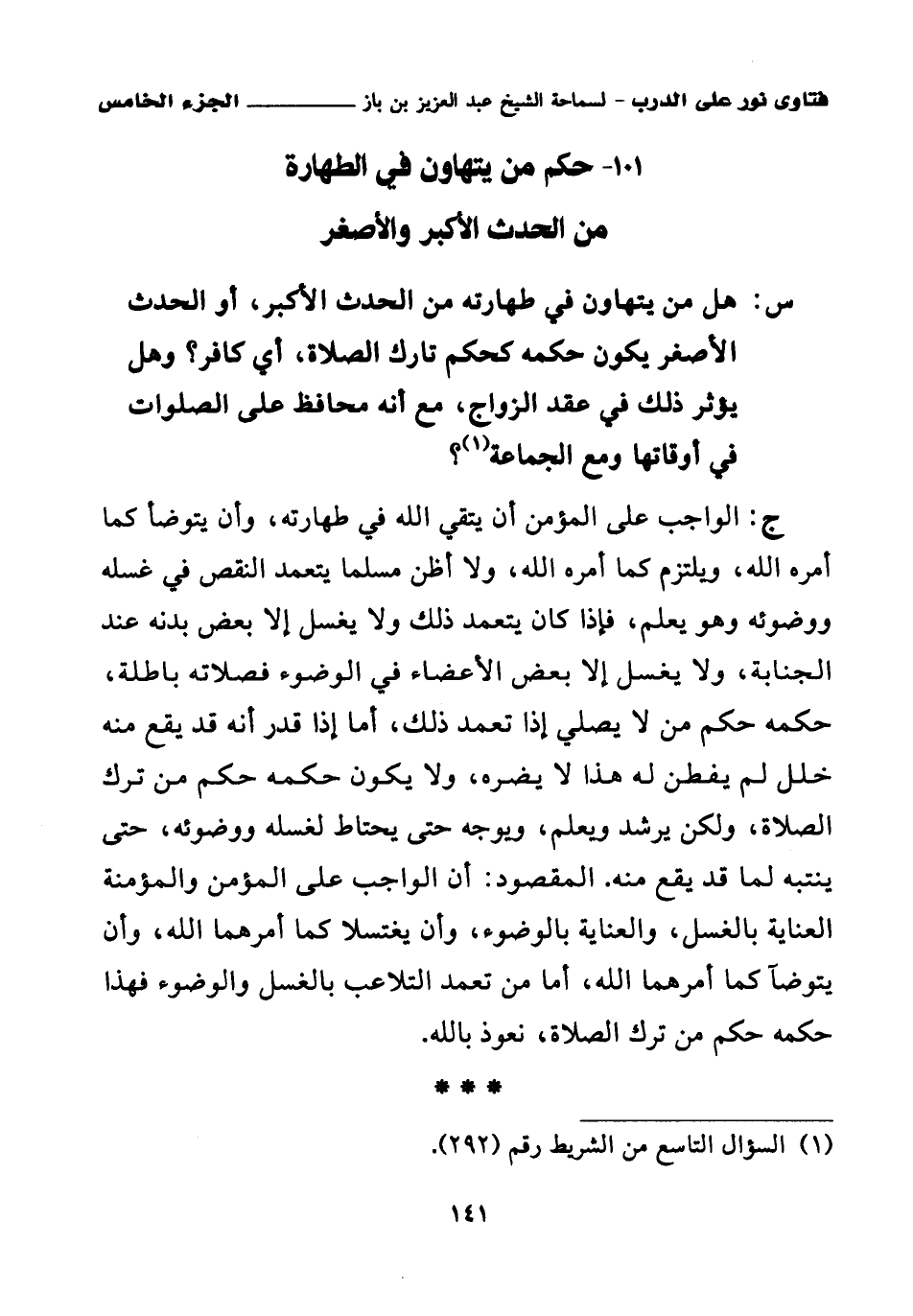101 - حكم من يتهاون في الطهارة من الحدث الأكبر والأصغر