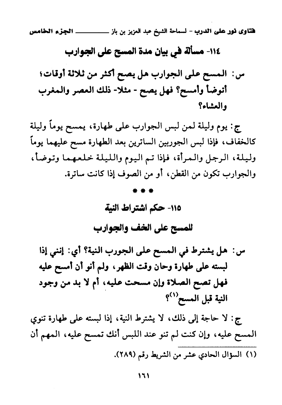 114 - مسألة في بيان مدة المسح على الجوارب