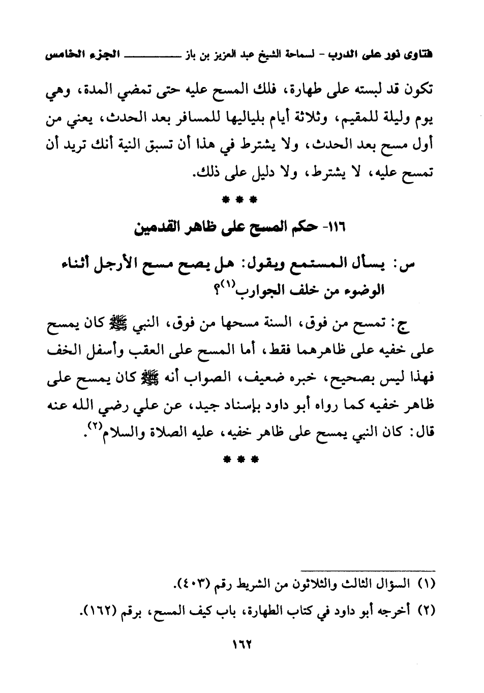 116 - حكم المسح على ظاهر القدمين