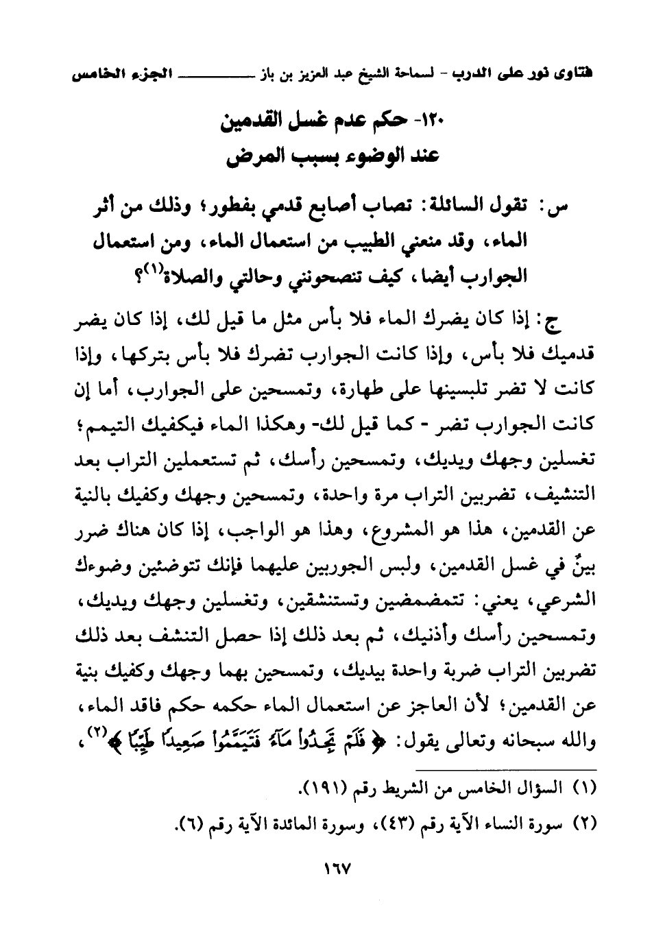 120 - حكم عدم غسل القدمين عند الوضوء بسبب المرض