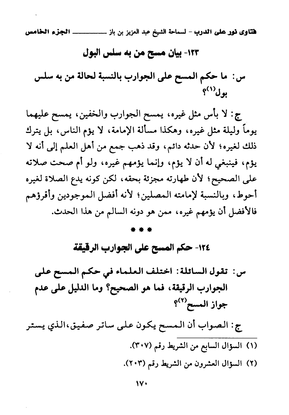 124 - حكم المسح على الجوارب الرقيقة