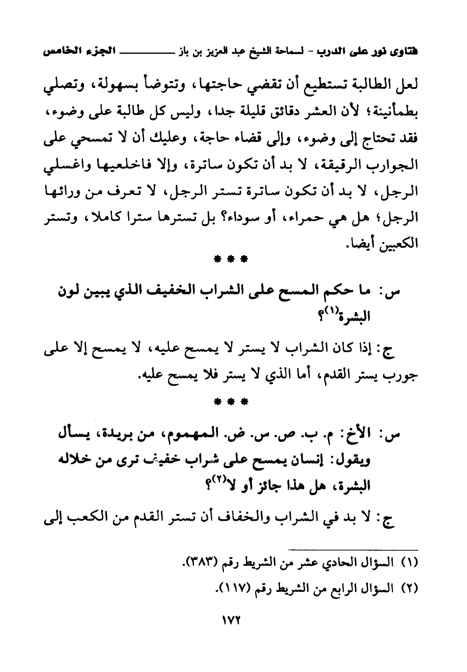 كتاب فتاوى نور على الدرب لابن باز بعناية الشويعر (اسم الجزء: 5)