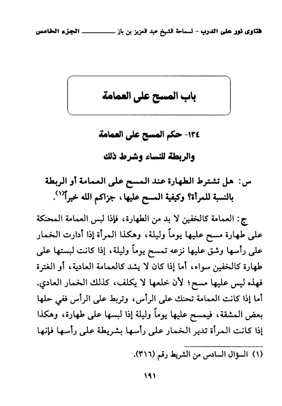 (¬1) السؤال السادس من الشريط رقم (316).