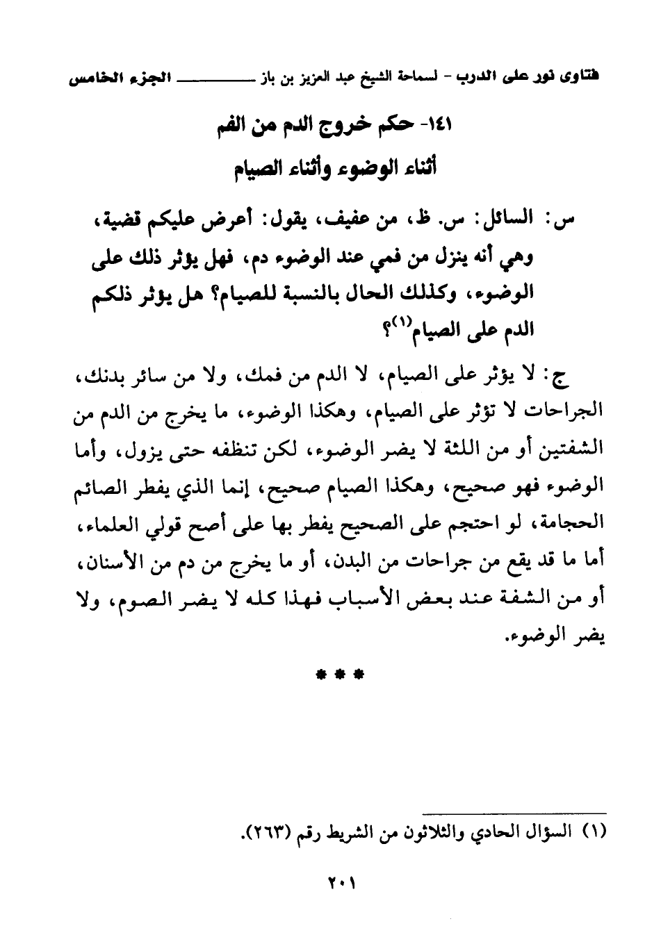 141 - حكم خروج الدم من الفم أثناء الوضوء وأثناء الصيام