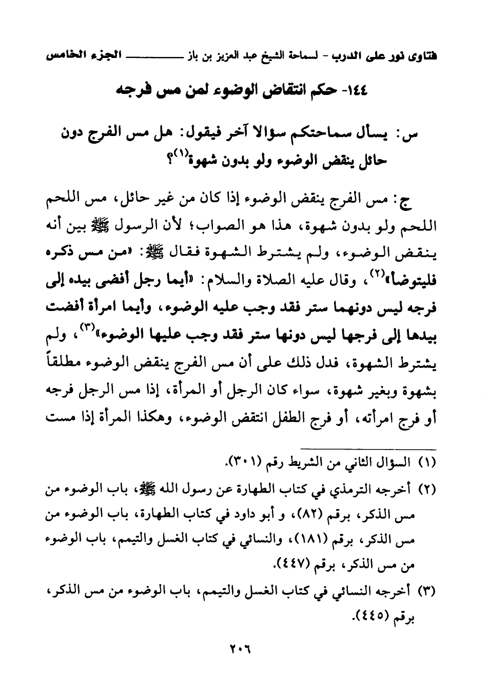 144 - حكم انتقاض الوضوء لمن مس فرجه