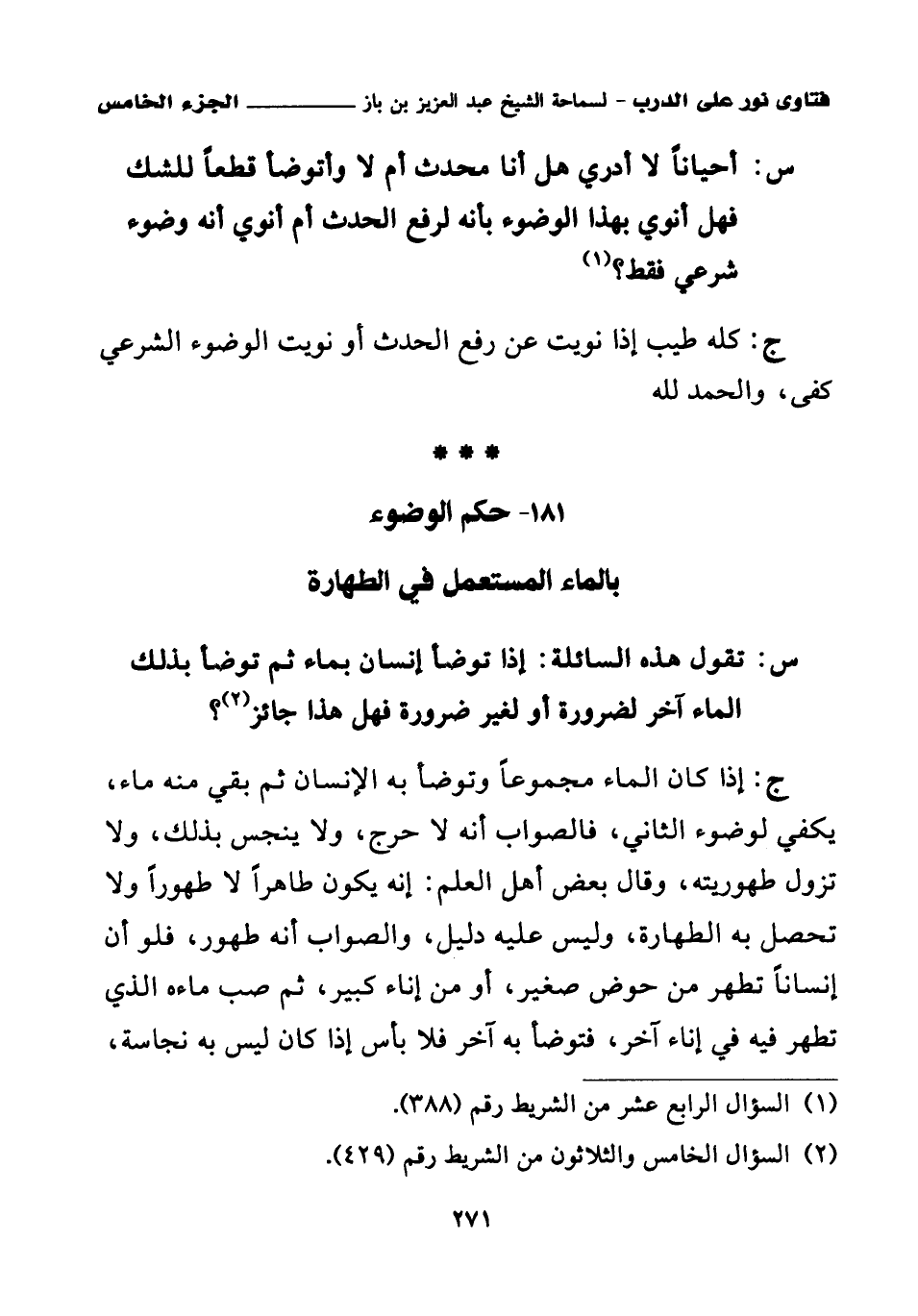 181 - حكم الوضوء بالماء المستعمل في الطهارة