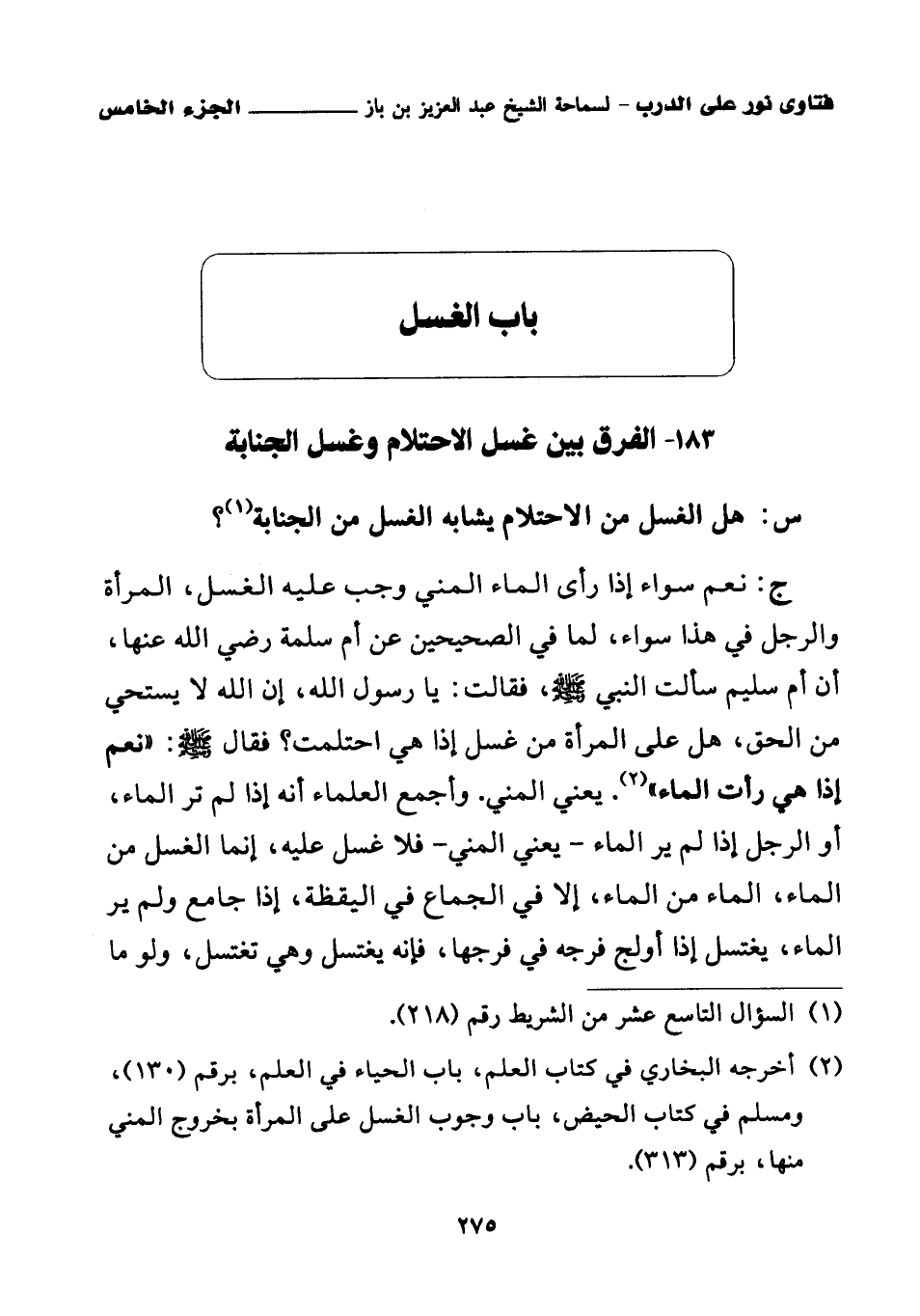 183 - الفرق بين غسل الاحتلام وغسل الجنابة
