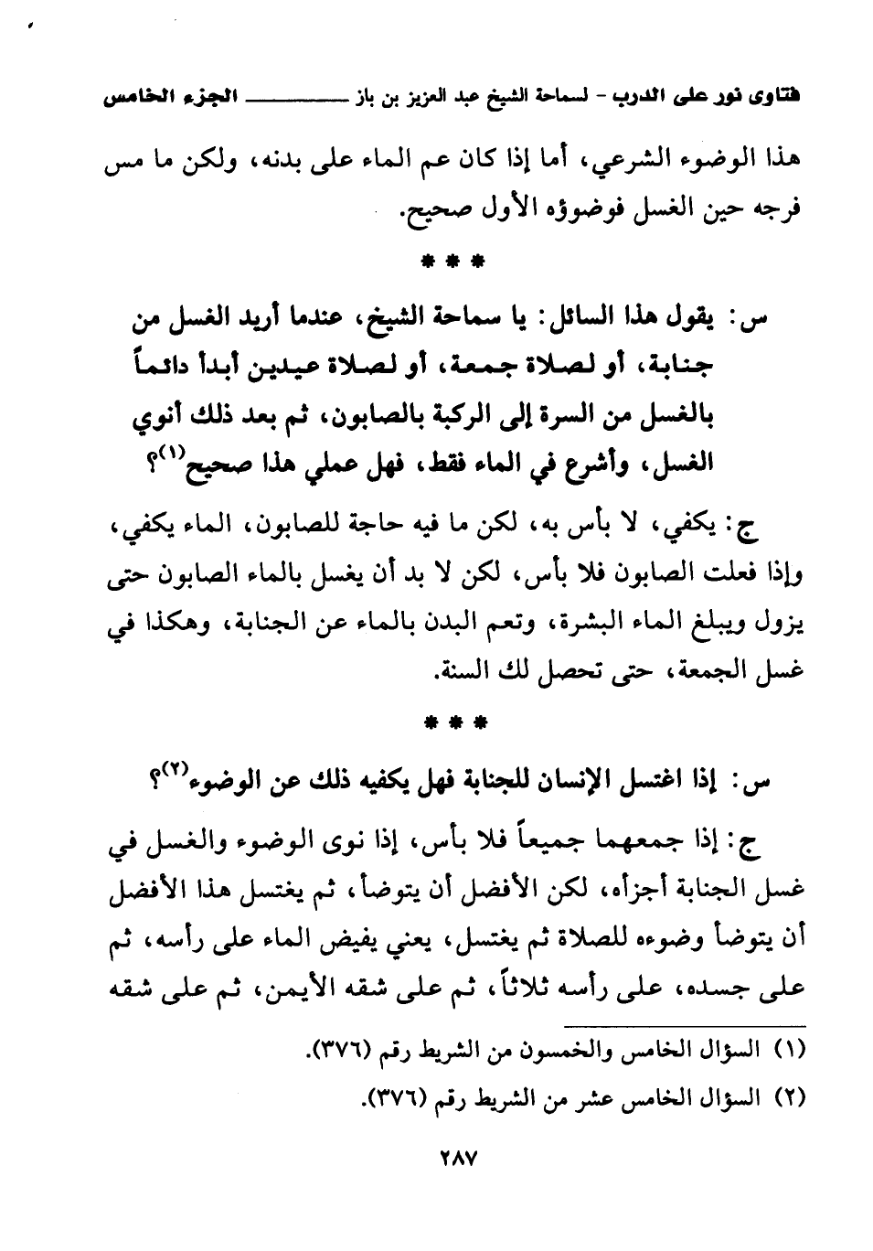 كتاب فتاوى نور على الدرب لابن باز بعناية الشويعر (اسم الجزء: 5)